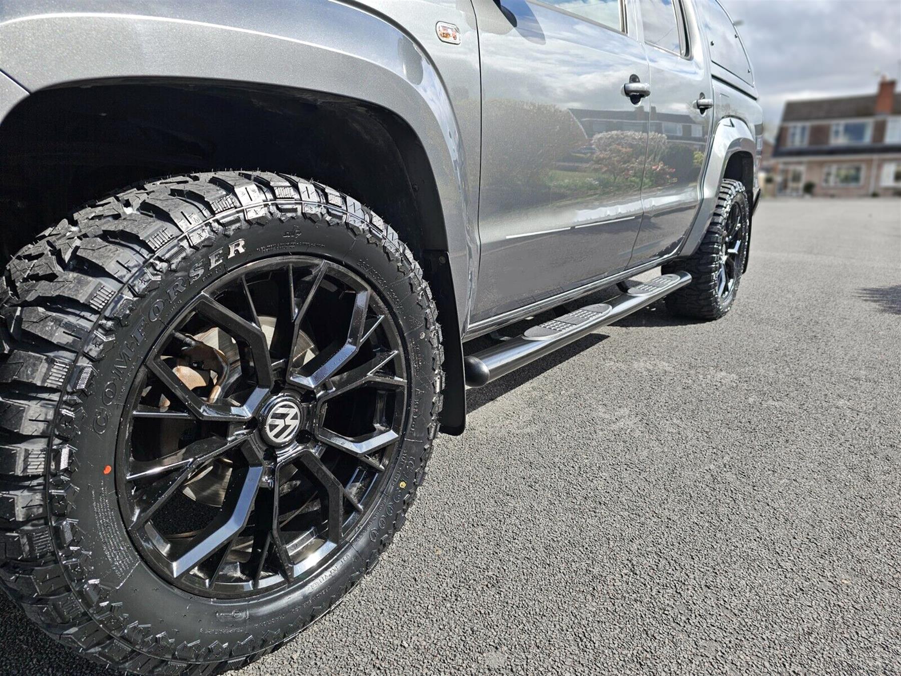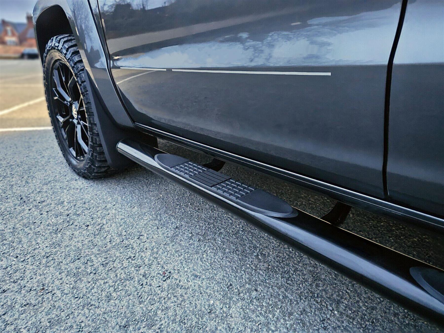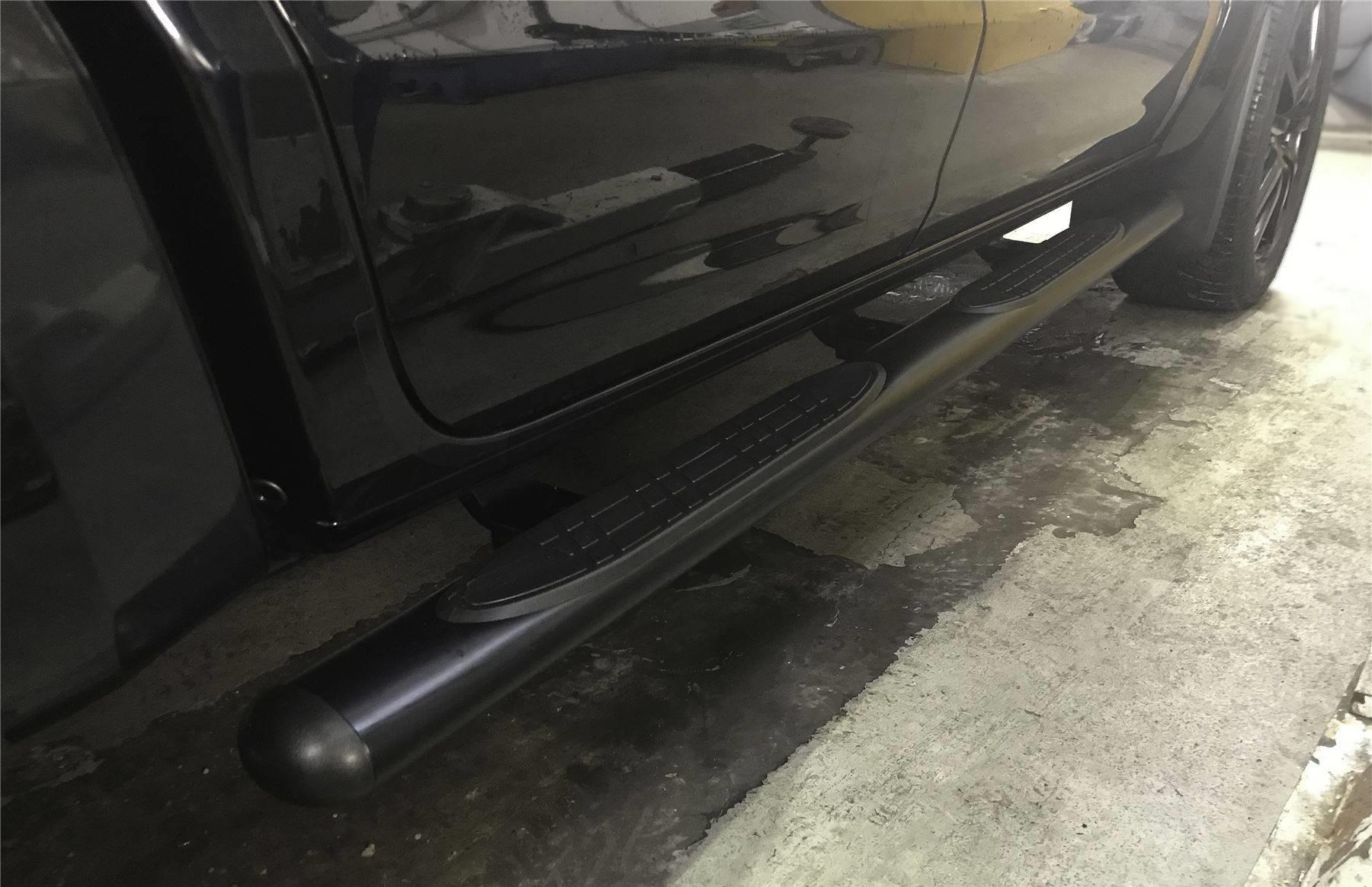High quality Black Powder Coated Stainless Steel Side Bars with Step Pads for Volkswagen Amarok ( 2016 - 2023 models). Fits all dual / double cabs. These top of the range side bars will have your vehicle looking top spec at a fraction of the cost of the genuine items but with the same high quality.
