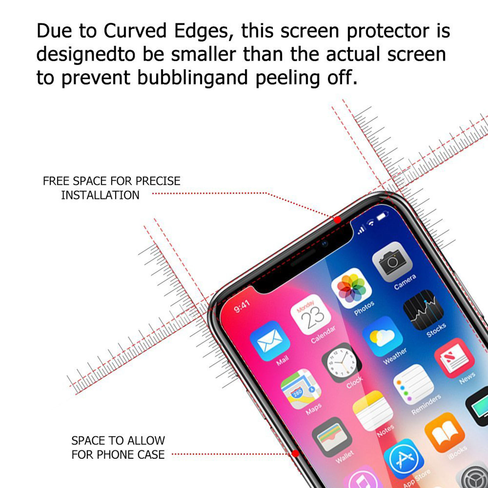 - Please Note: The iPhone screens have curved edges that our screen protectors do not cover 100%, as they would peel over time causing customer frustration. We designed our screen protectors so you will have maximum coverage on your device with ease of installation and durability.
