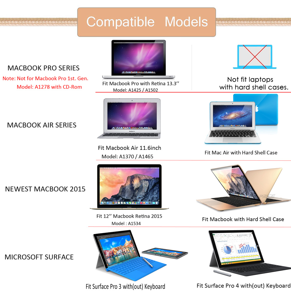 - Specifically designed and made for 12inch Apple Macbook Retina 2015; Apple Macbook Air 11.6inch; 13.3inch Macbook Pro / Air / Retina; Microsoft Surface Pro 3/4