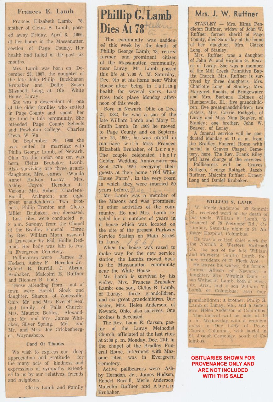 DESCRIPTION: Vintage photograph, shows a large group of people on some sort of outing or picnic. From the collection of the Lamb family of Newark, Ohio, Columbus, Ohio, and Luray, Virginia, see last photo below of obituaries for some family history, please note that obits are shown as provenance only and are not included with this sale. SIZE/WEIGHT: 5" x 3 1/8". CONDITION: GOOD. |