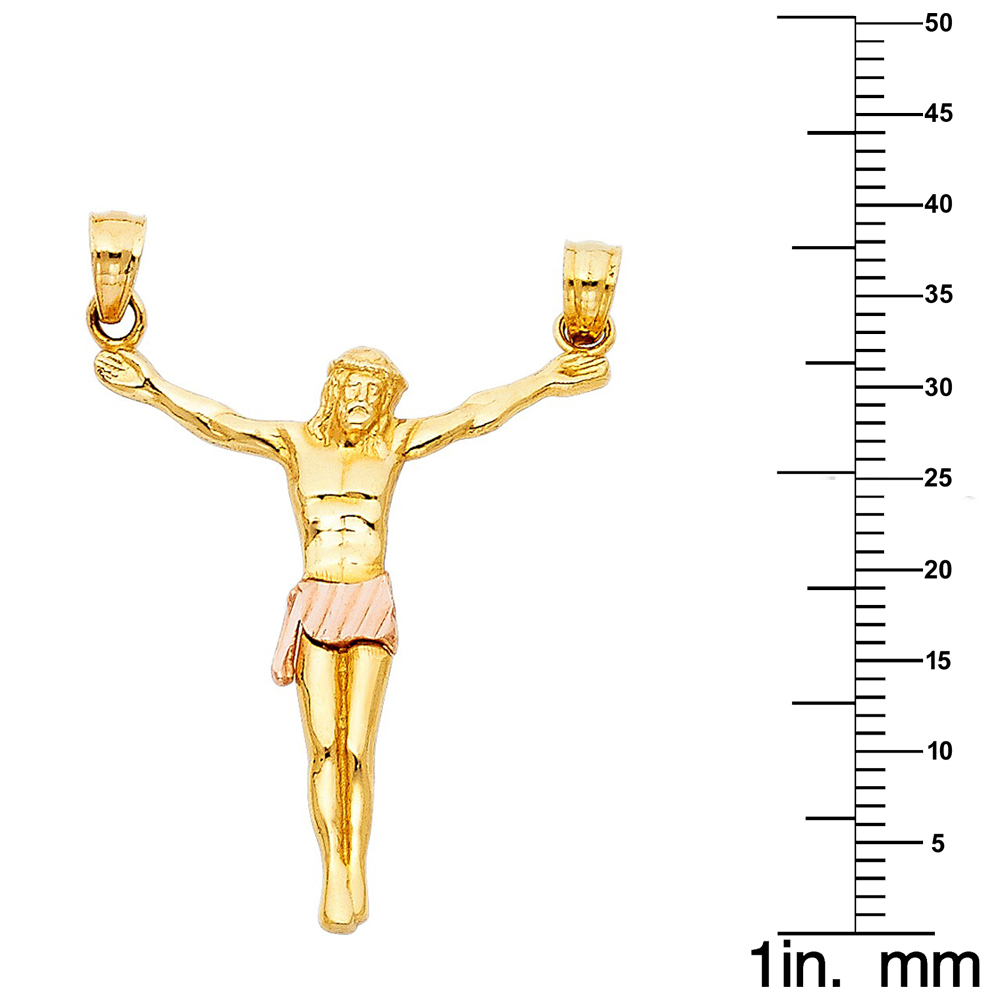 Genuine 14k Two-Tone Gold 1.37" Jesus Body Crucifix Pendant Necklace 16" to 24"
