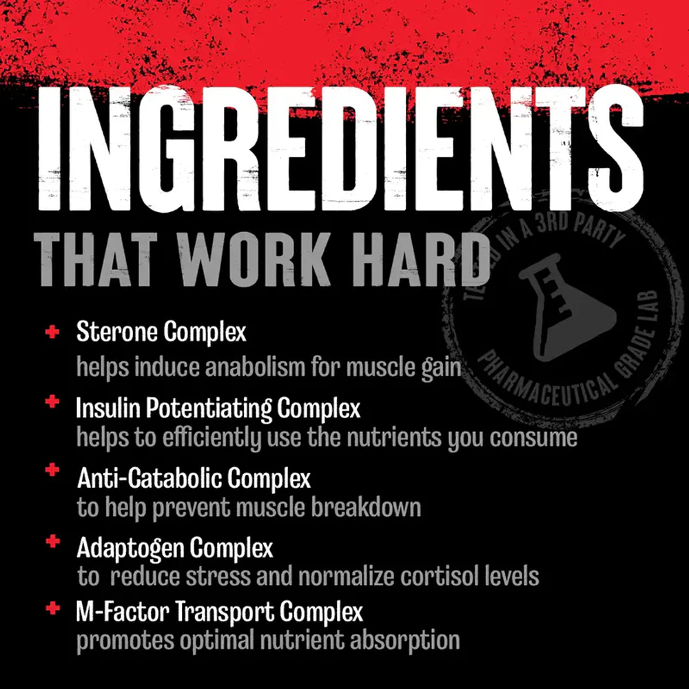 Universal Nutrition's Animal M-Stak is built on a foundation of natural anabolic flavones to help enhance targeted gains in lean muscle mass. M-Stak combines the most powerful of these anabolic compounds in significant dosages. These ingredients have the ability to shuttle nutrients specifically towards lean mass accumulation, a process known as 'nutrient partitioning.' M-Stak floods your system with an abundance of anabolic nutrients, switching your muscle-building signals on and amplifying them.