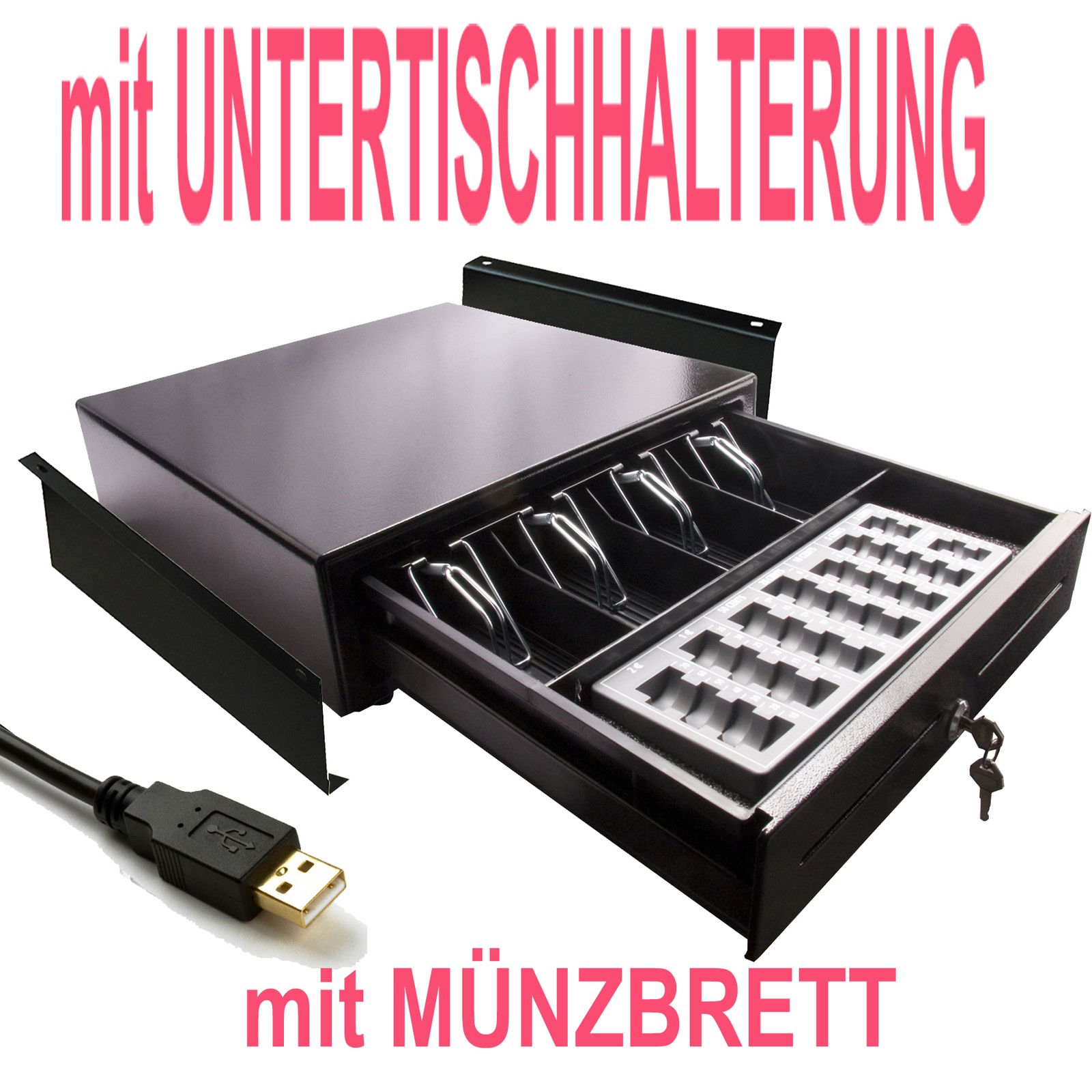 Kassenlade 410 x 410 x100 mm RJ12 / RJ11 - 4 x Schein- 8xMünzfächer Untertischba