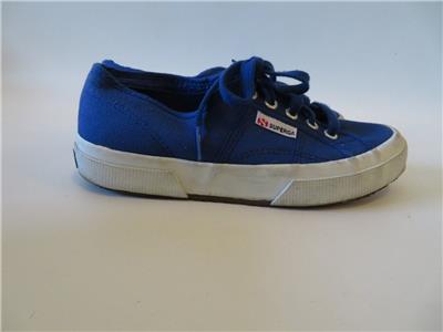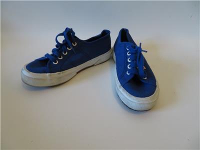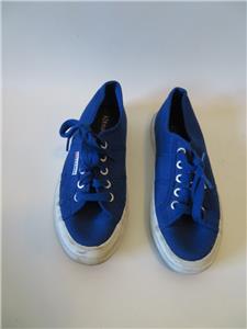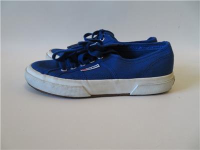UNISEX SUPERGA BLUE MATERIAL WHITE RUBBER CASUAL SNEAKERS MENS 5/WOMENS 6.5*