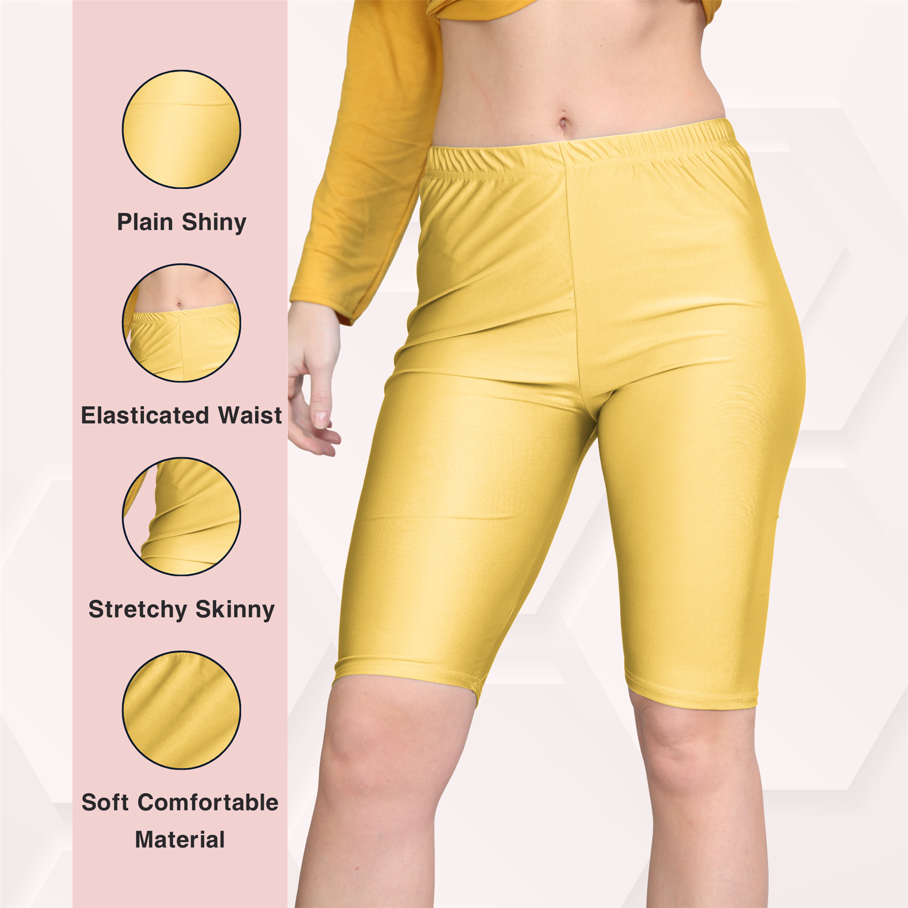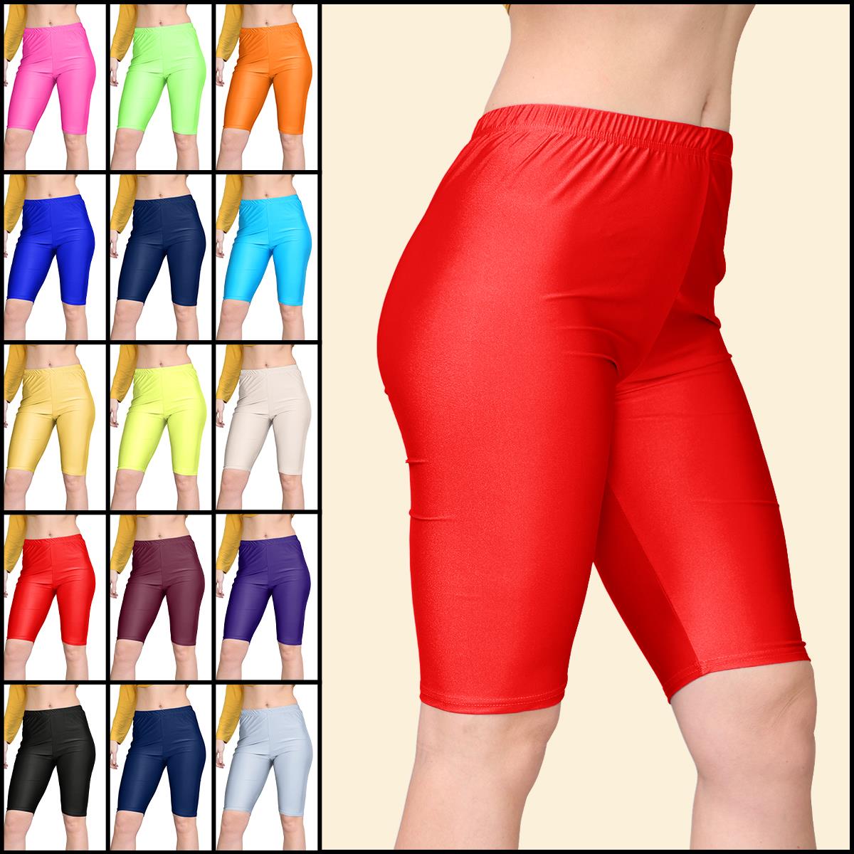 New Womens Shiny Nylon Lycra Stretchy Dance Running Sports Cycling Shorts Pants Which Is Perfect Addition For Summer Wardrobe In Summer Season Wear. It Has Soft Stretchy Comfortable Material, Elasticated Waist, Slim Fit Skinny, Plain Shiny Nylon Lycra Gymnastics Running Short Leggings Cycling Shorts Pants Which Gives Stylish Classy Look, Ideal For Yoga Ballet Dance Sports Casual Evening Outwear.