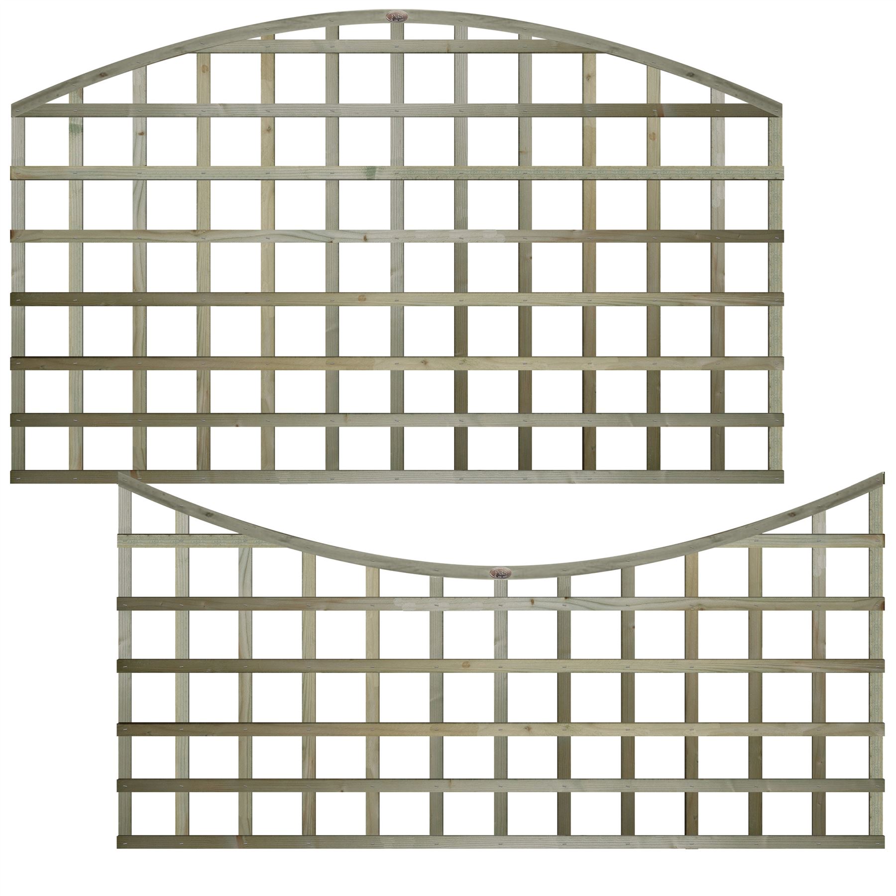 This standard concave top wooden garden trellis from Premier Garden Supplies is expertly crafted with traditional joinery for superior strength and stability. The standard square lattice design features approximately 100-120mm gaps between the rough-sawn timber laths, creating a sparsely formed pattern that allows light and airflow while providing partial privacy. The overall height is measured at the shoulder (where the concave arch begins). The timber laths measure approximately 32mm x 16mm, providing a robust and durable construction.