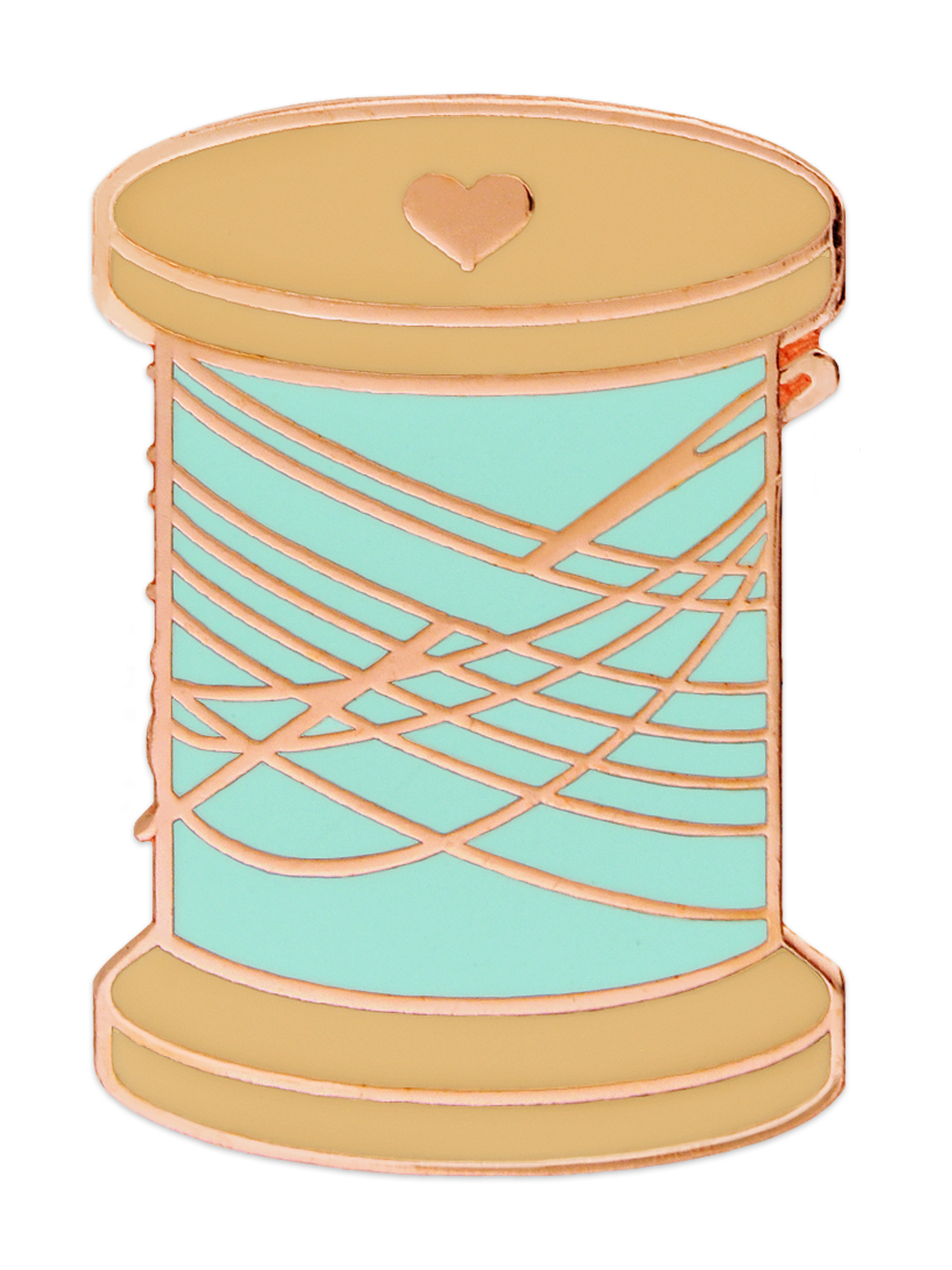 This adorable Spool Of Thread Pin will keep your pins and needles near when working on a cross stitch or hemming up a jacket cuff. It is made with the jewelry-quality cloisonné process and is copper plated. It's hand polished smooth-to-the-touch, leaving a clean and shiny surface perfect for holding push pins and needles with colored thread. Each crafty pin includes a heavy-duty magnetic back and is individually poly bagged.