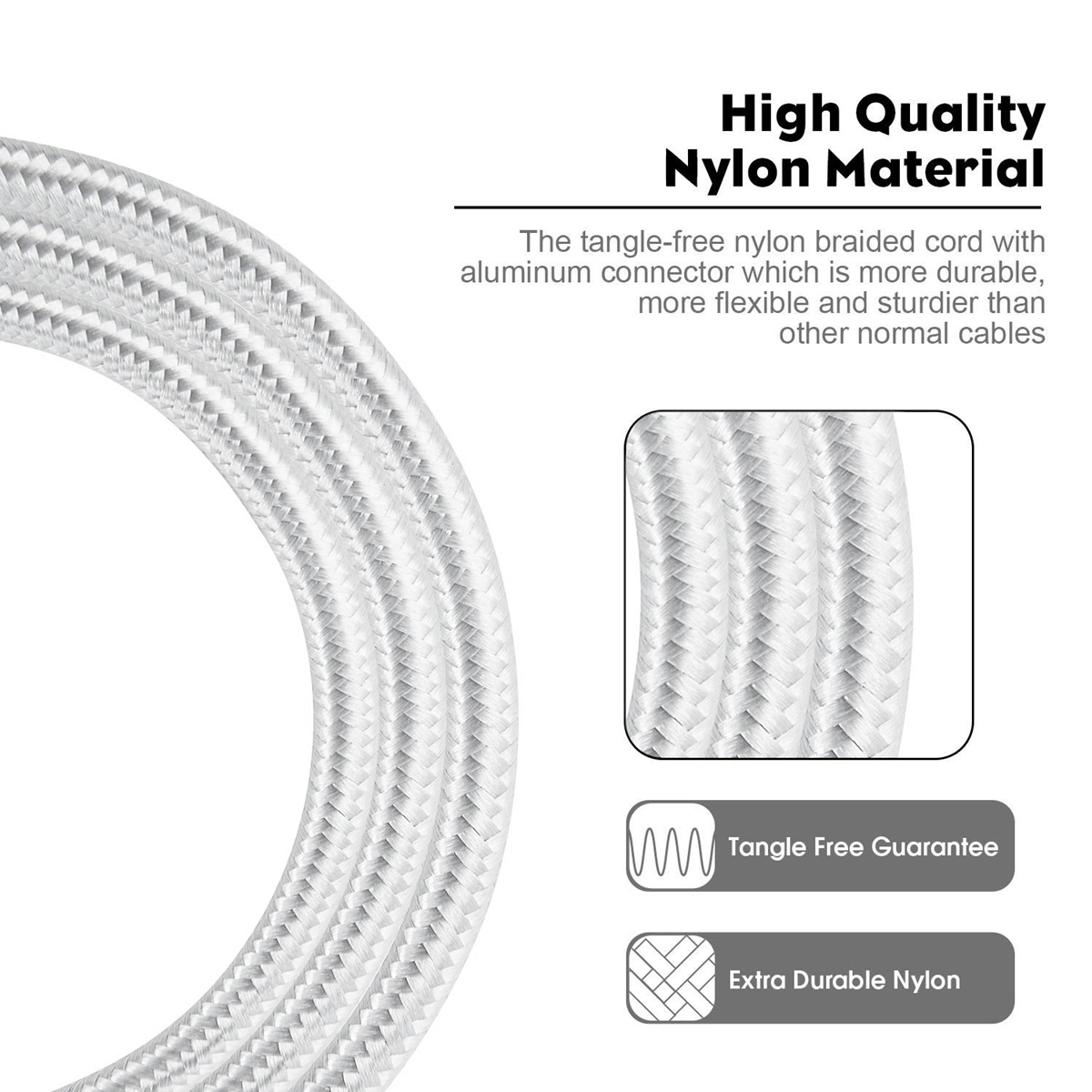 - Military grade material: Premium nylon braided cable adds additional durability and tangle free. Special Strain Relief design, can bear 10000+ bending test