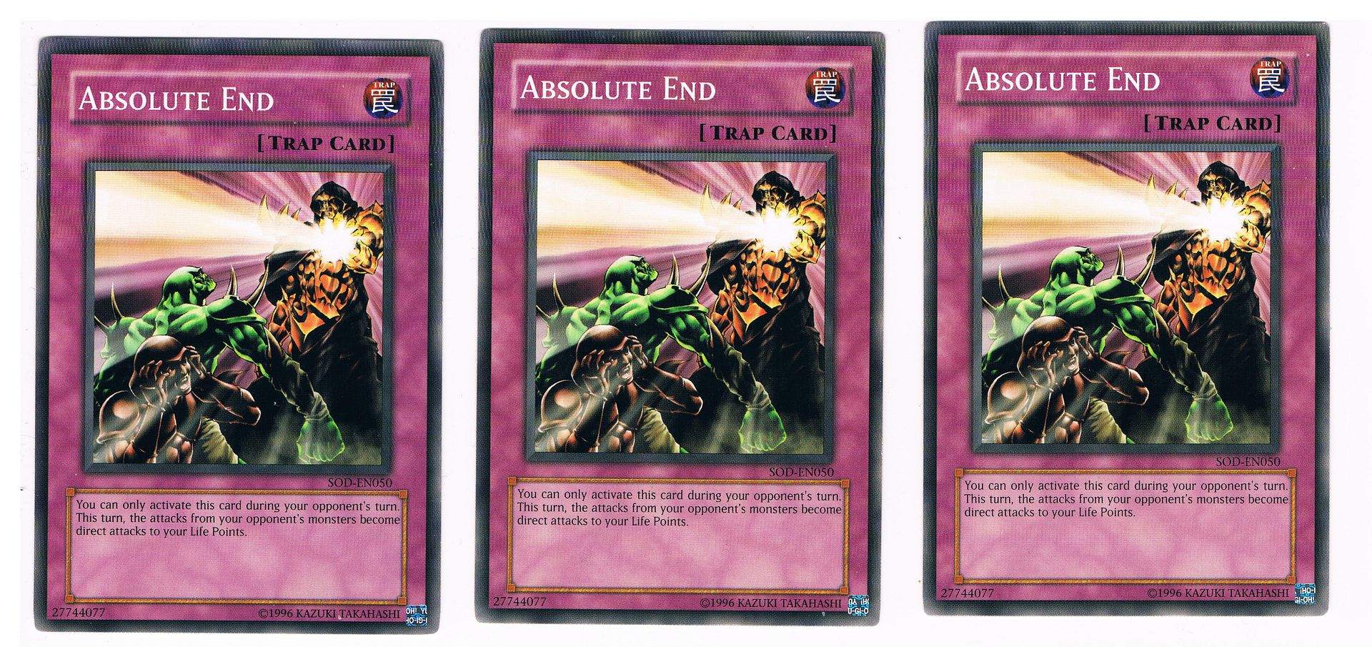 ![]() | GRAB A BARGAIN WHILE YOU CAN! LIMITED AVAILABILITY YUGIOH! - ABSOLUTE END - SOD-EN050(X3)