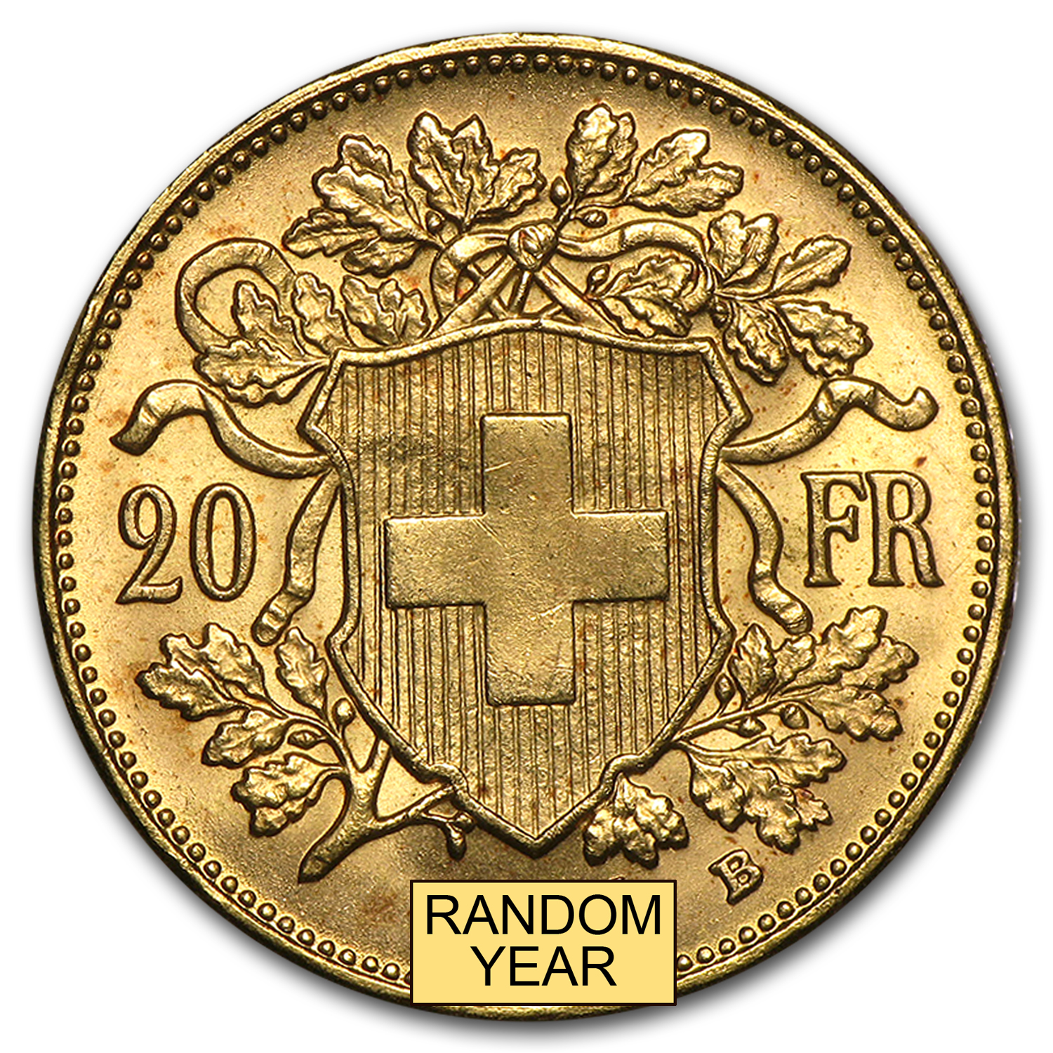 - Reverse: Shows a rendition of the Swiss shield surrounded by oak leaves with the value and date.