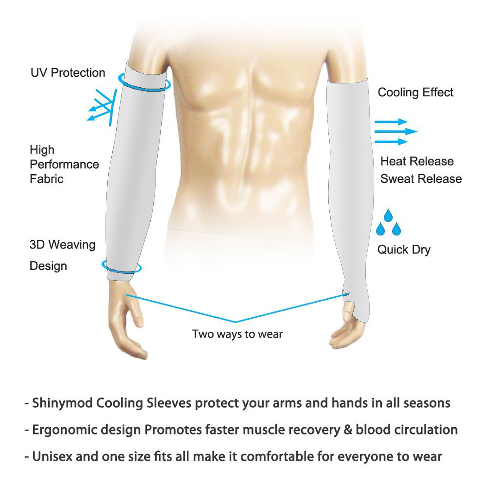 - ABOUT SIZE:For the size, we tested and get a conclusion that if your bicep size is 8inch - 13inch, you may feel most comfortable when wearing Shinymod arm sleeves. If you have a larger bicep, they may feel little tight.