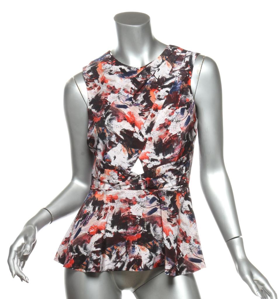 PRABAL GURUNG Womens Silk Front-Cut-Out Sleeveless Peplum Blouse Top US4 S NEW