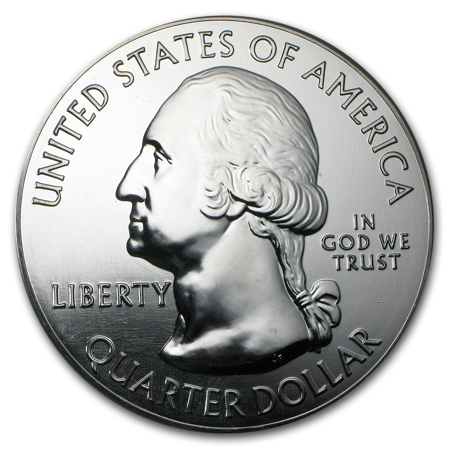 All America The Beautiful 5 oz Silver coins in the series have the same obverse of George Washington in a restored version of the portrait created by John Flanagan for the 1932 Washington Quarter. The reverse on each America The Beautiful Quarter includes an individual design for each National Park. Unlike the reeded edge of the normal quarter coins in circulation, the America The Beautiful Silver bullion coins have a smooth edge inscribed with the coin specifications: .999 FINE Silver 5.0 OUNCE.
