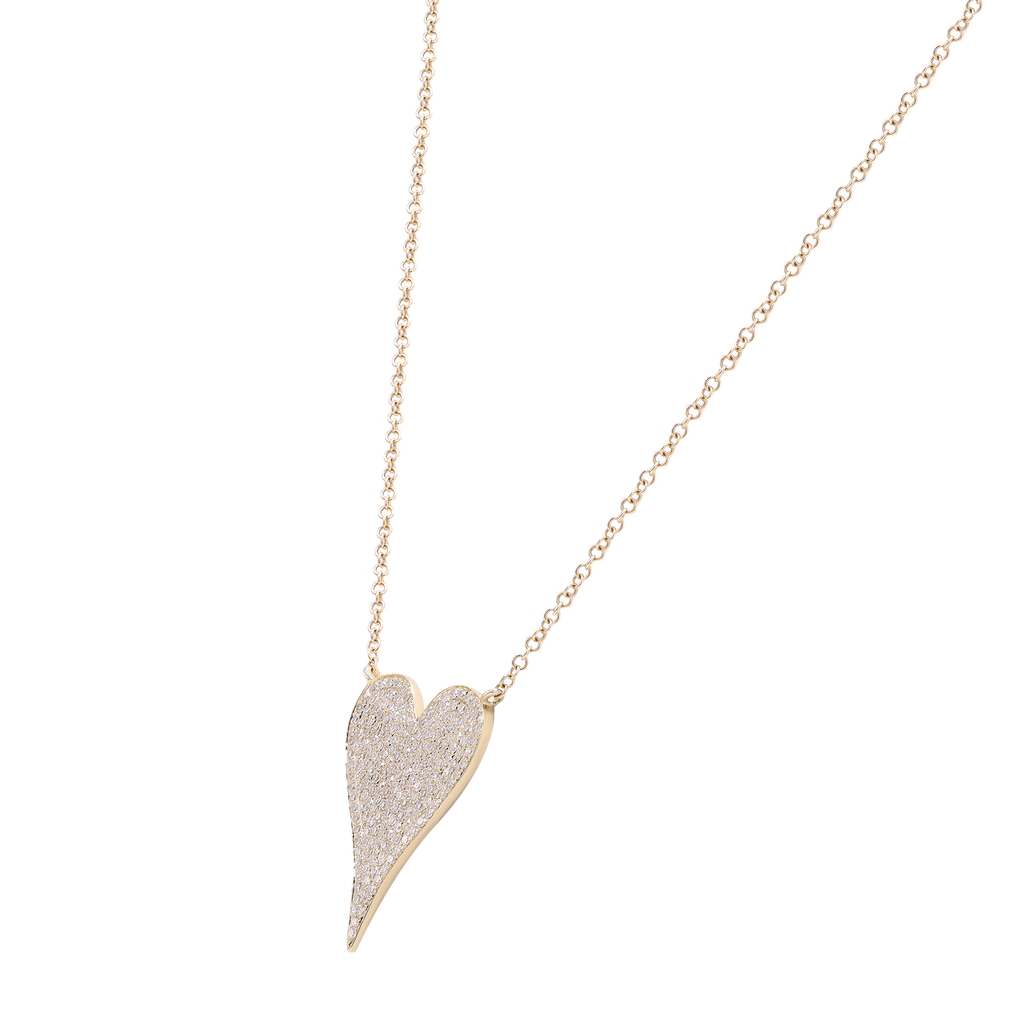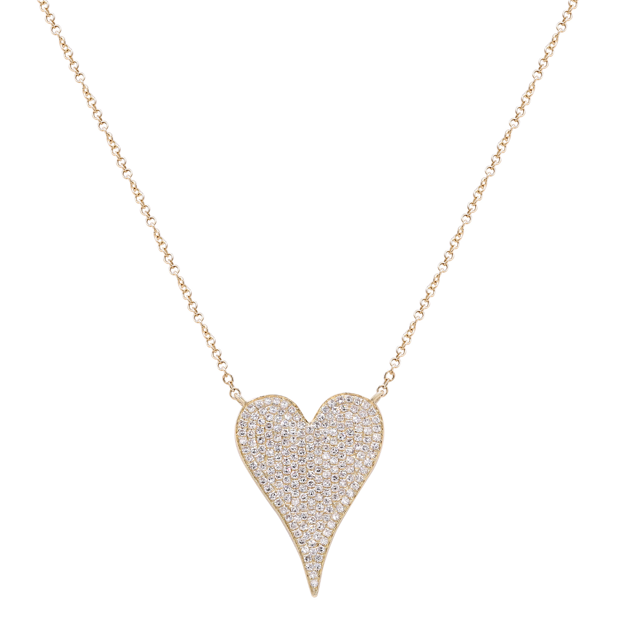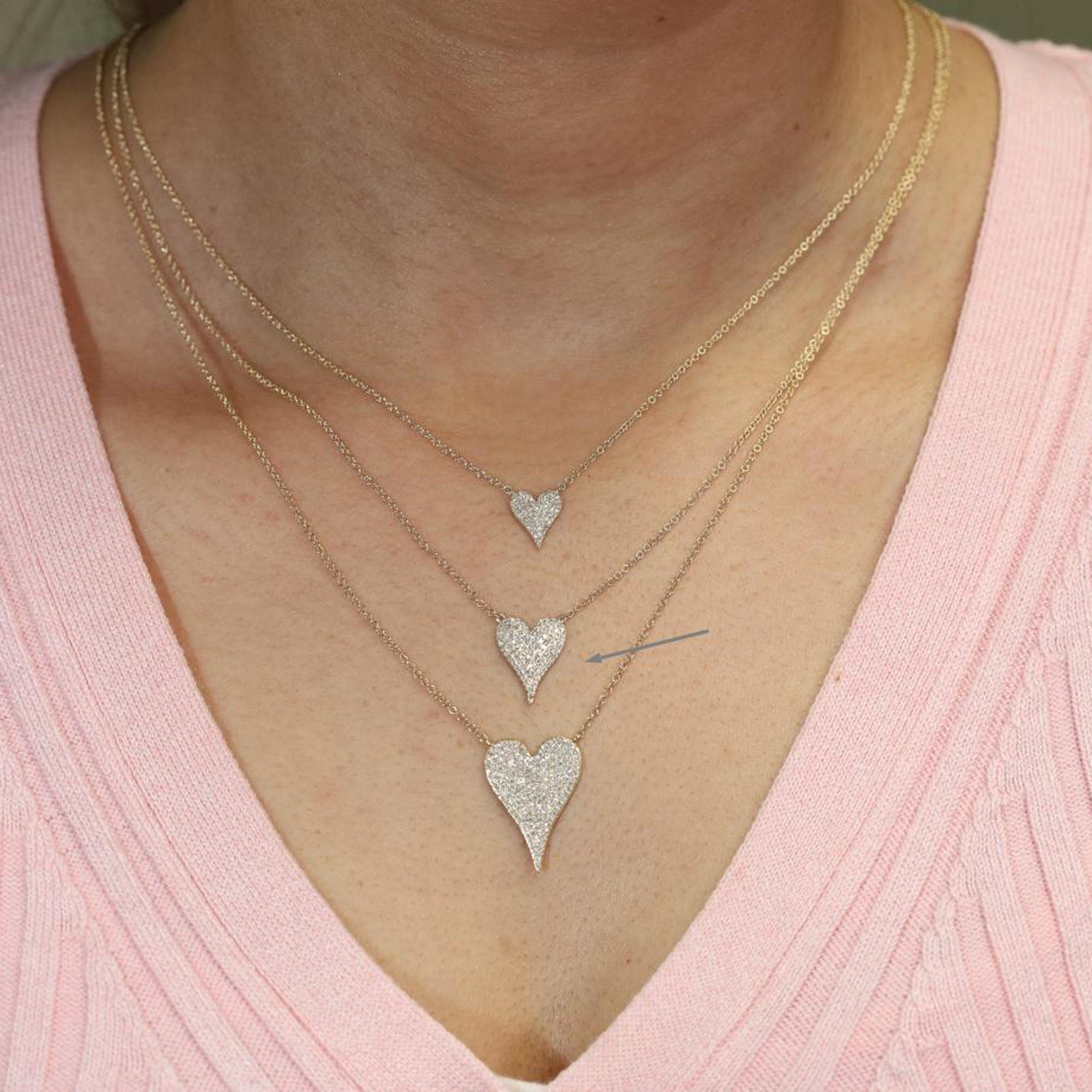 Trendy jewelry with real gold and real diamonds. This beautiful, delicate and precious diamond necklace will leave everyone speechless the moment they see it. Crafted in high polished solid 14k yellow gold. This necklace is set with tiny brilliant round cut diamonds of G-H color and clean VS clarity. Diamond carat weight: 0.21. Chain length: 18 inches. Pendant length: 0.55 inch, width: 0.40 inch, thickness: 1.1mm. Weight: 2.4 gms. Available in 14K white gold and 14k rose gold too. Comes with a presentable gift box.