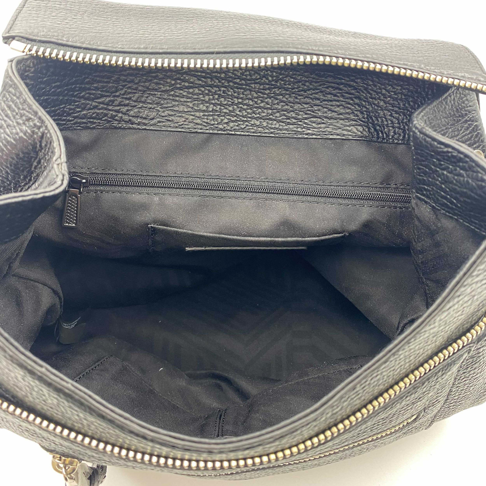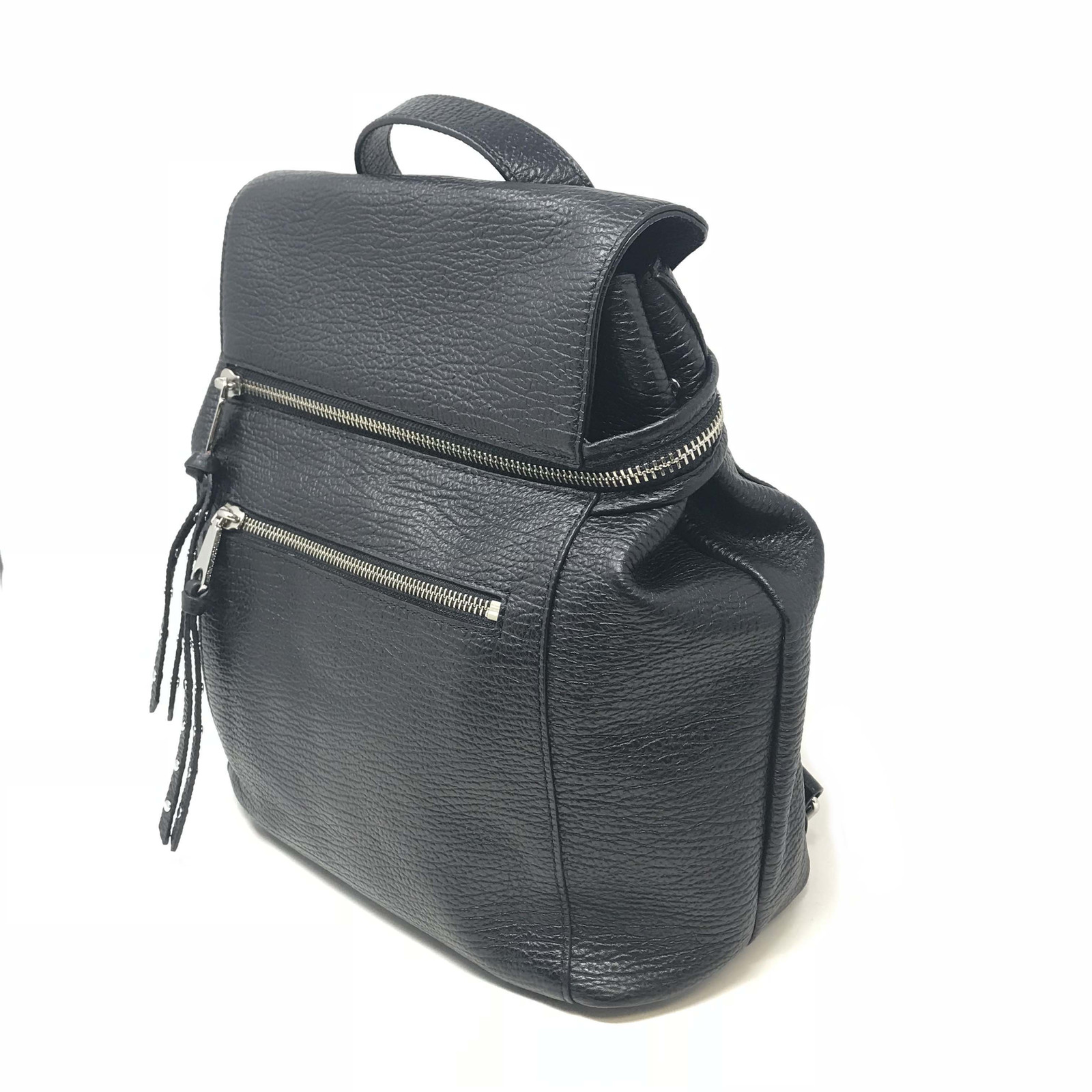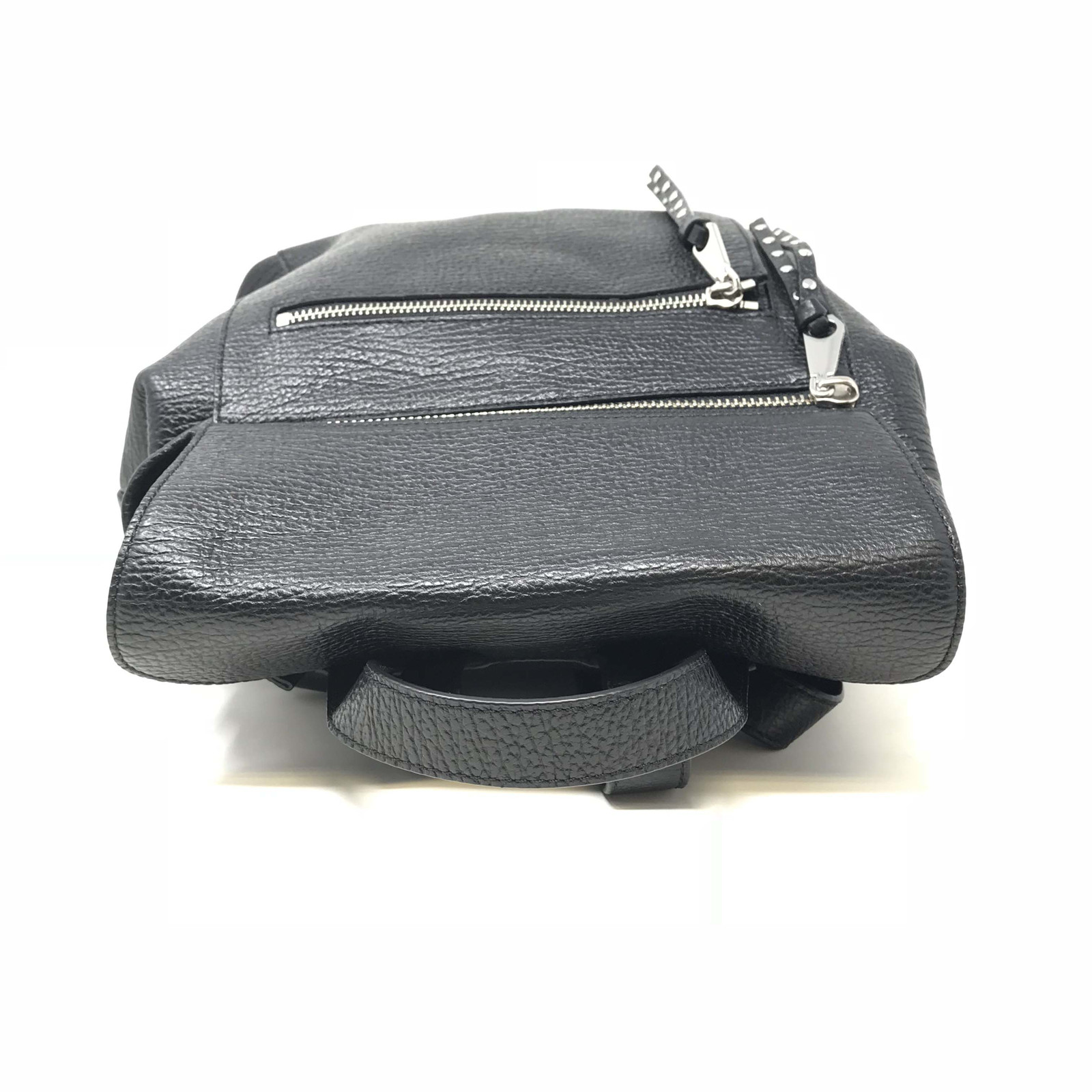 This is new Rebecca Minkoff Jane HF26EJAB31 Medium Black Leather Ladies Backpack. It's completed with black pebble leather and silver tone hardware. Opens and closes with a zipper, has 1 exterior and 1 interior zip pockets, as well as 3 interior slip pockets. Backpack handle drop - 3.5 Inch, adjustable up to 13 Inch strap. Dimensions: 13'' x 13'' x 6.5''.