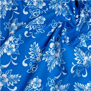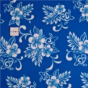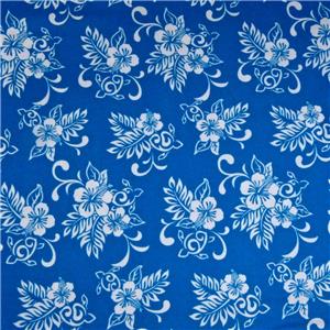 - By Transpacific, a Hawaiian print flannel with small pua kokio (hibiscus flowers) and lau (leaves,) tossed on bright blue.