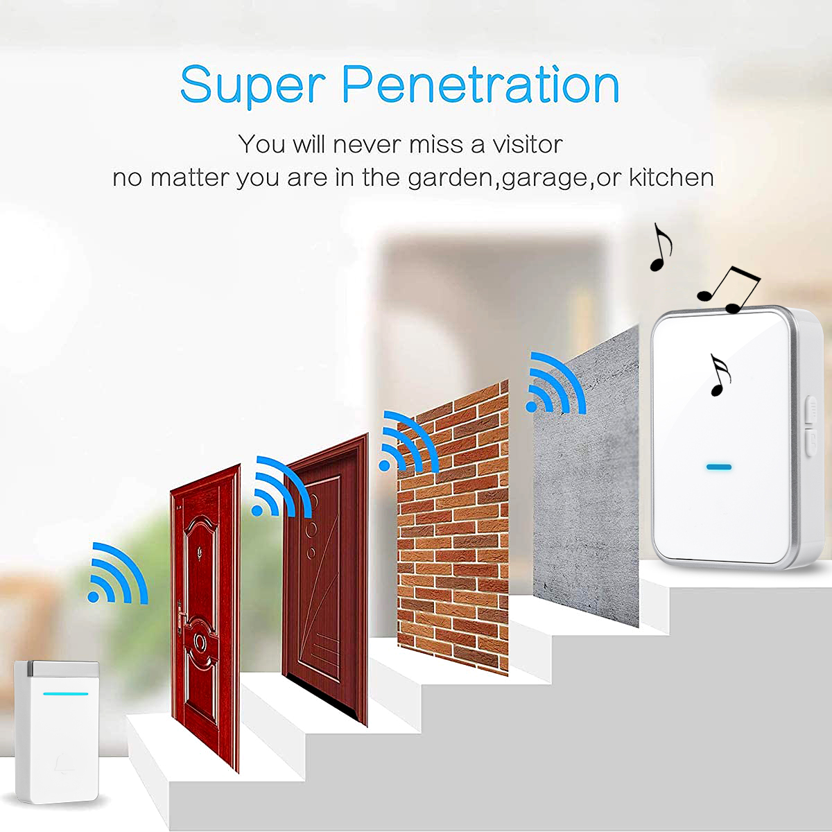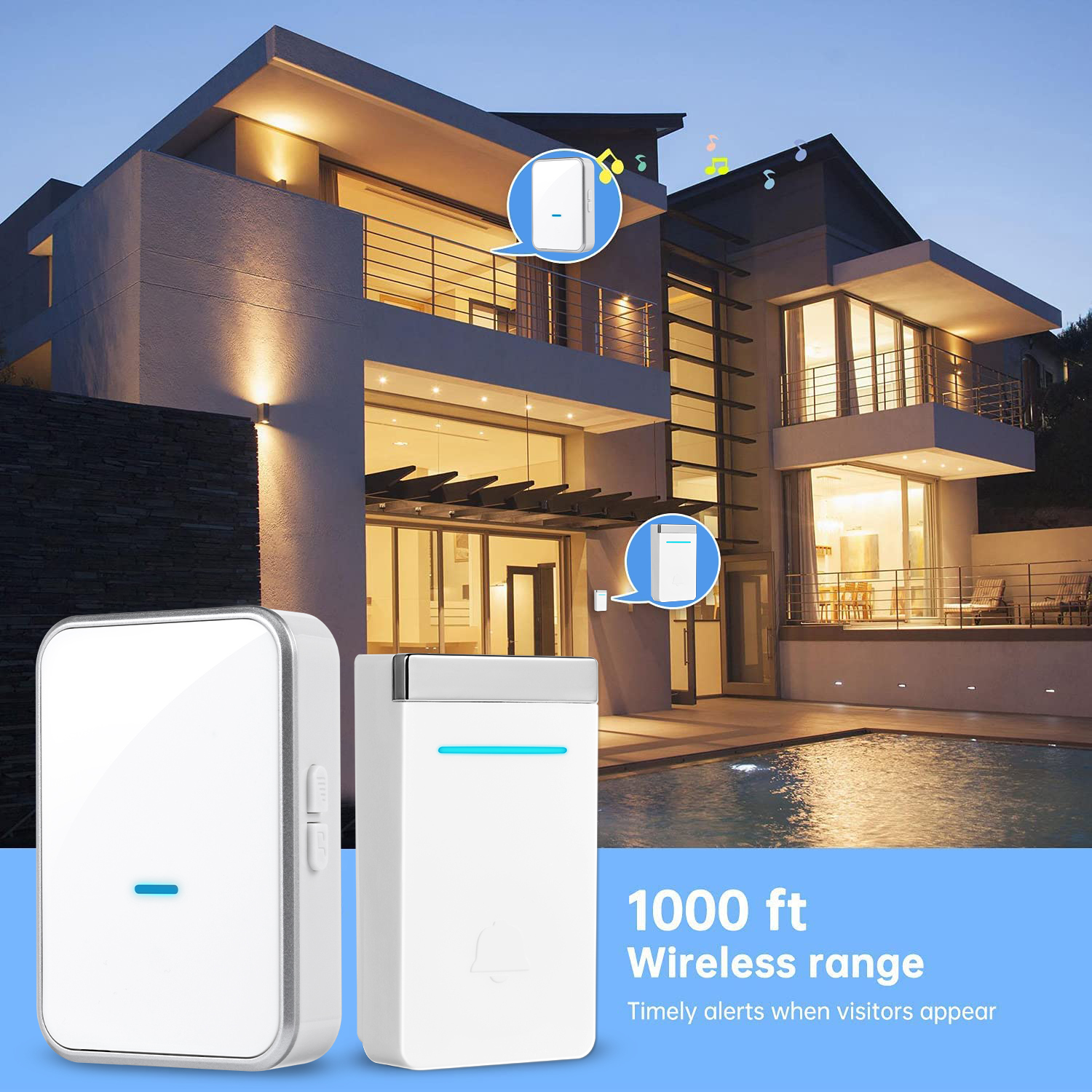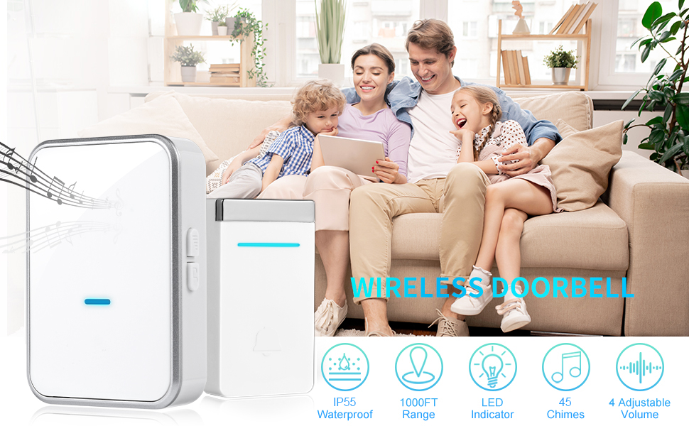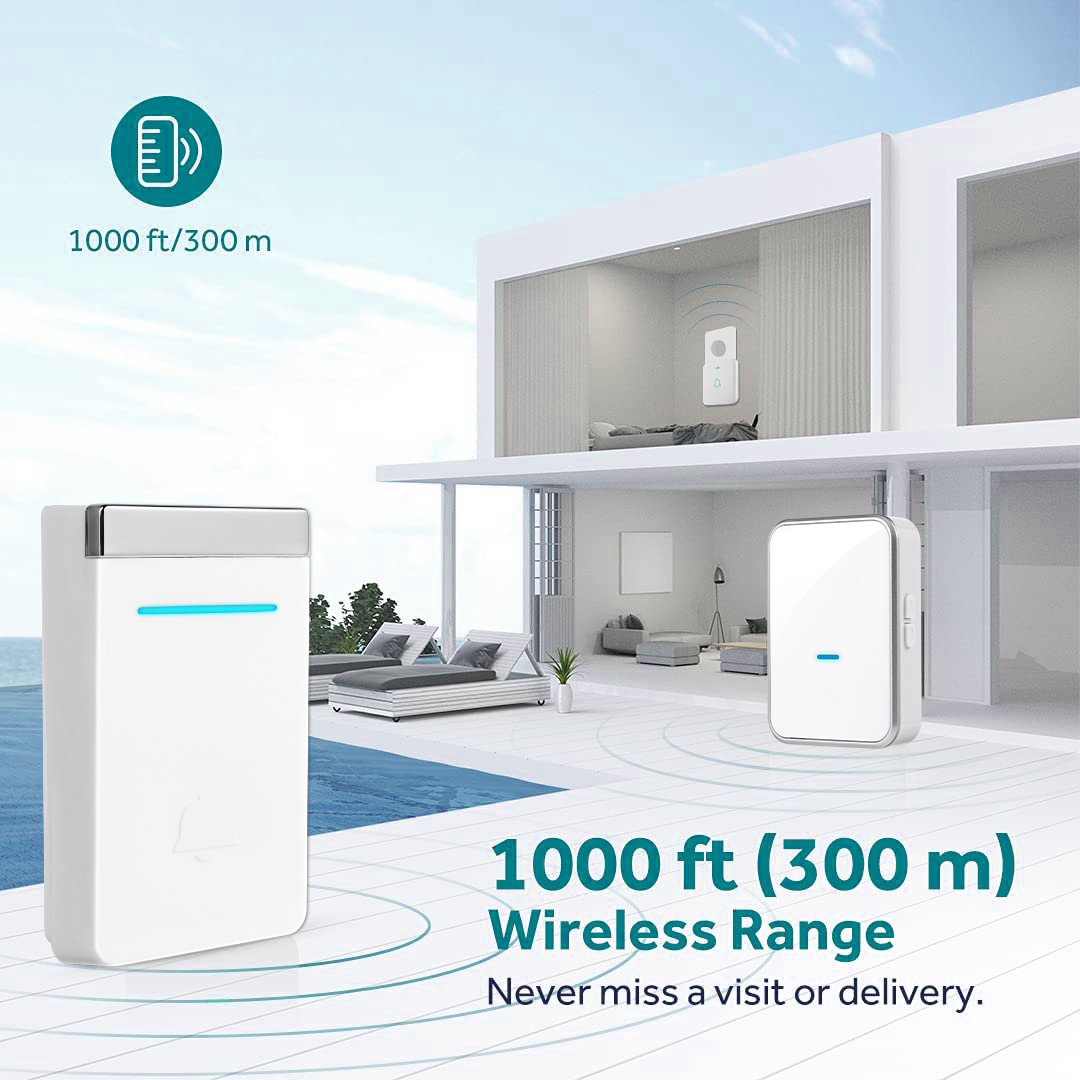 - Long Range - Operating range up to 1,000ft/300m in open area ensures you to hear the bell and answer the door in time.