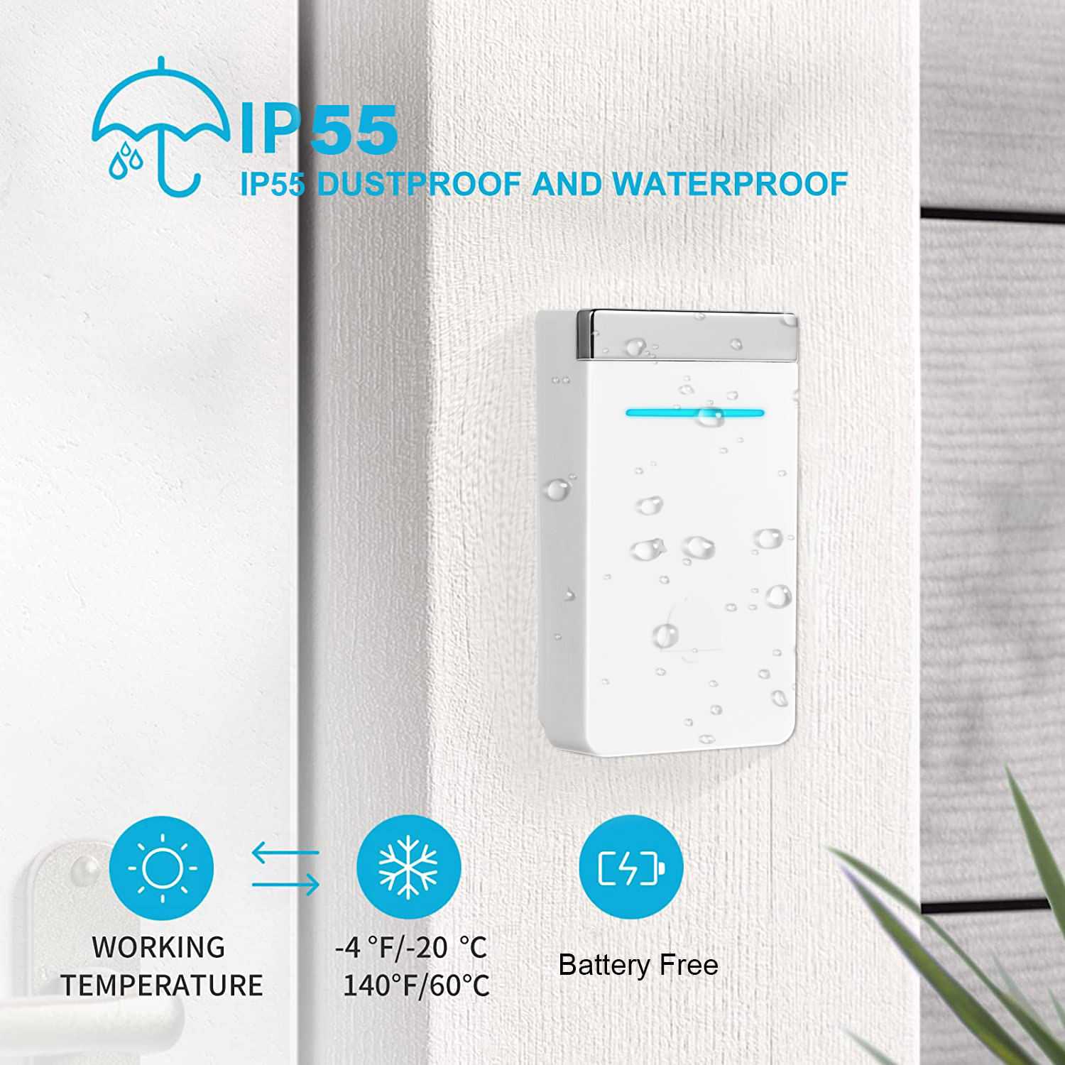 - Waterproof Design - IP55 dustproof and waterproof rating; works between -4 °F to 140 °F; withstands various harsh weather conditions.