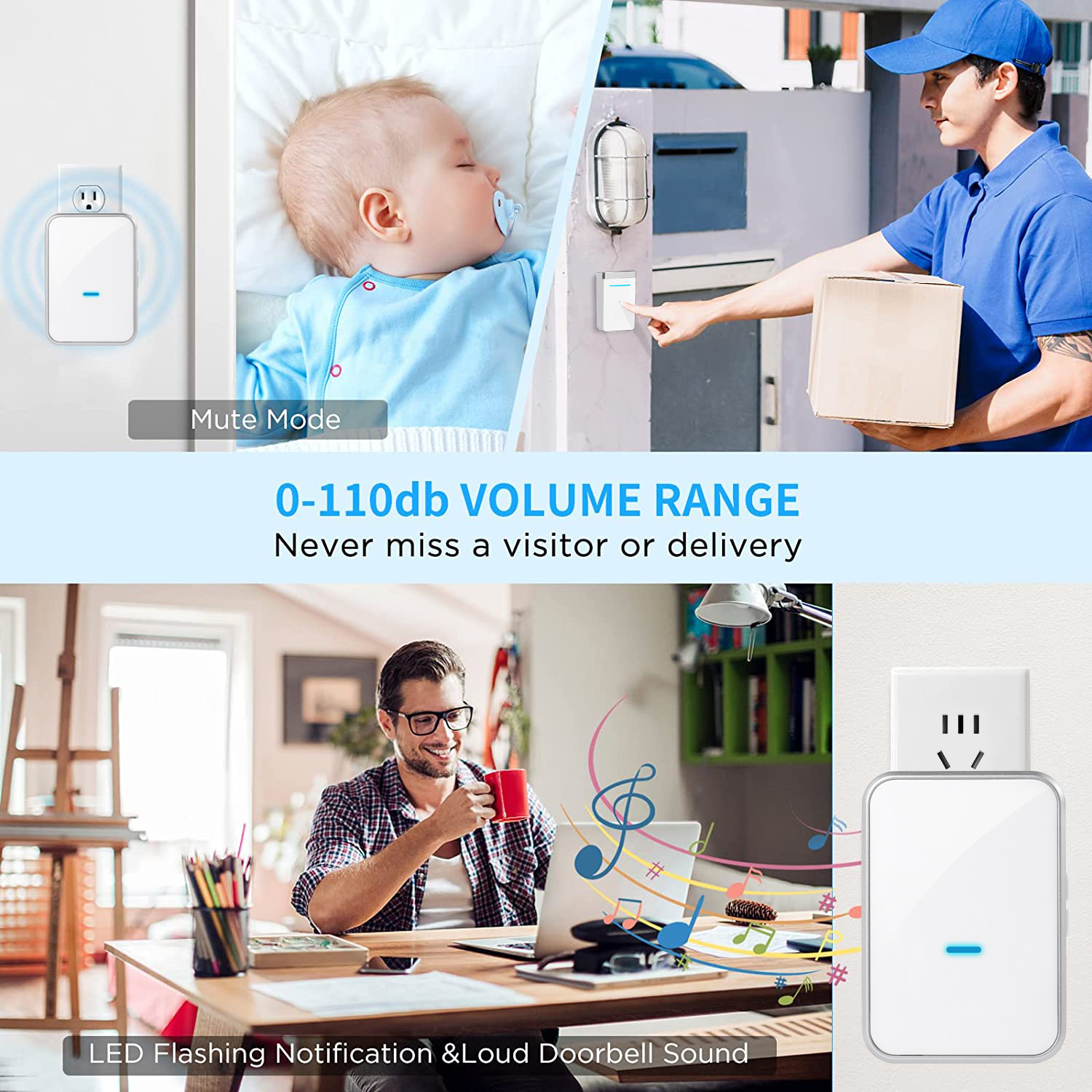 - Built-in LED Indicator - Our wireless doorbell receivers and transmitters feature LED indicators that creates visual alerts for the hearing impaired.