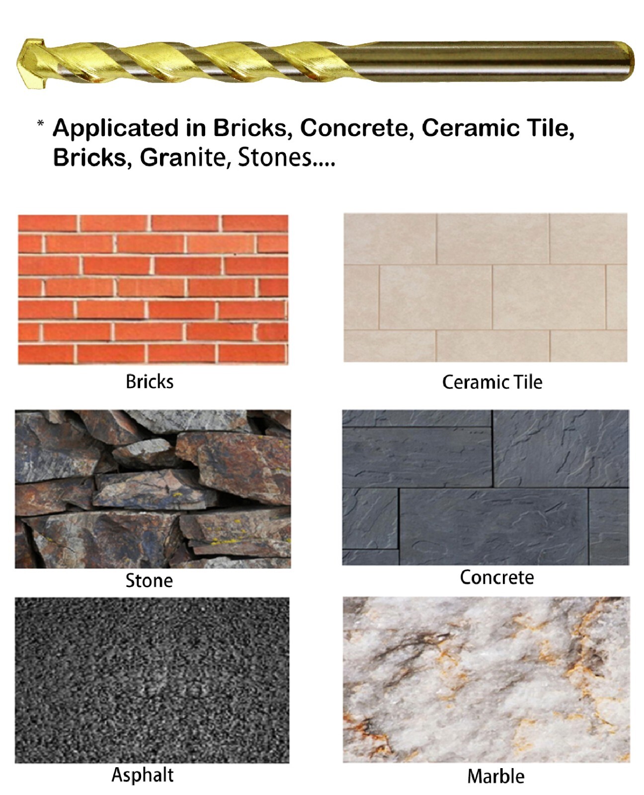 - Application DRILL MASON, CONCRETE, STONE, BRICKS, TILES..