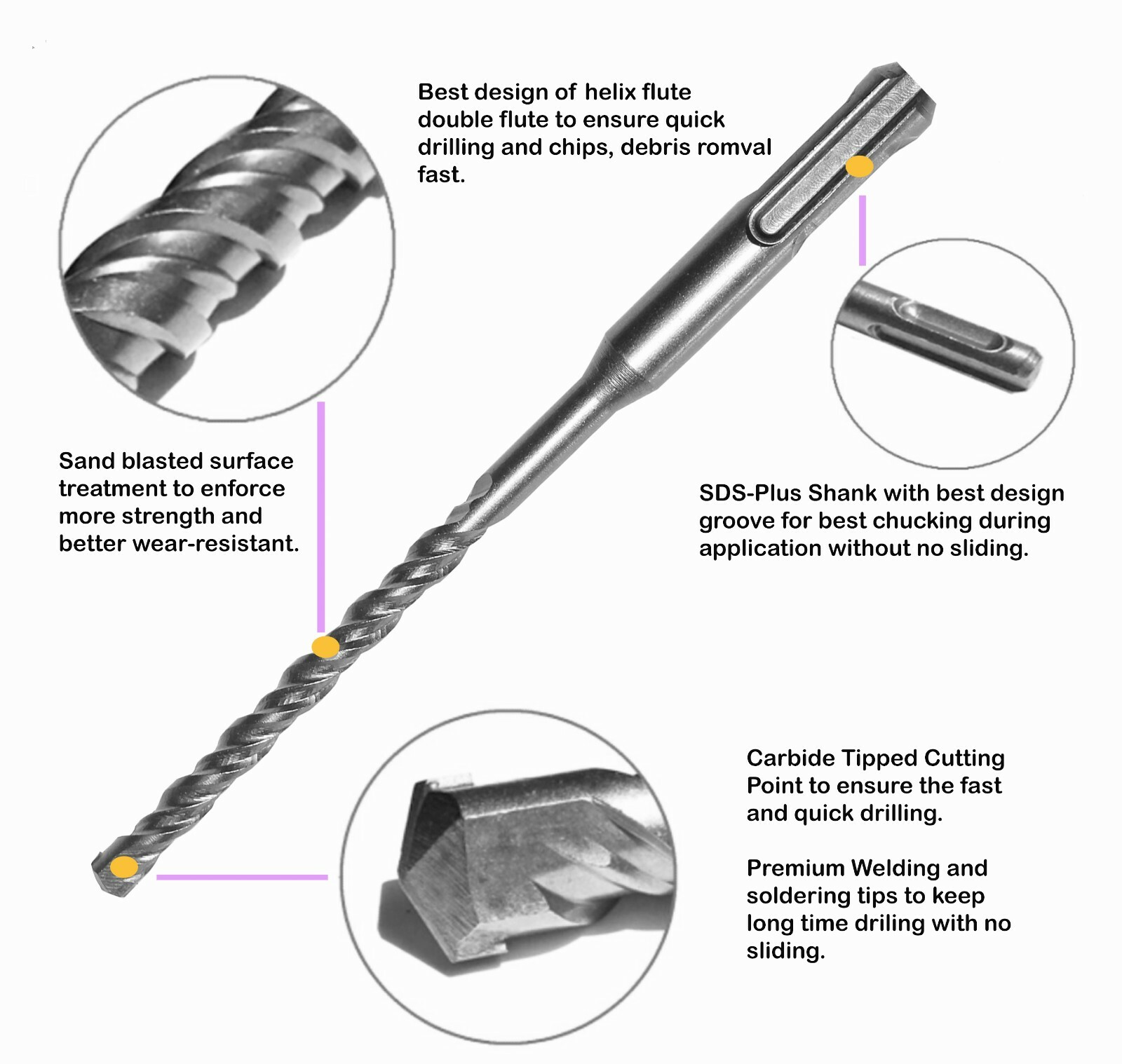 ✅Chucking Shank: SDS Plus shank allow best chucking in cordless drill and electric rotary hammer.