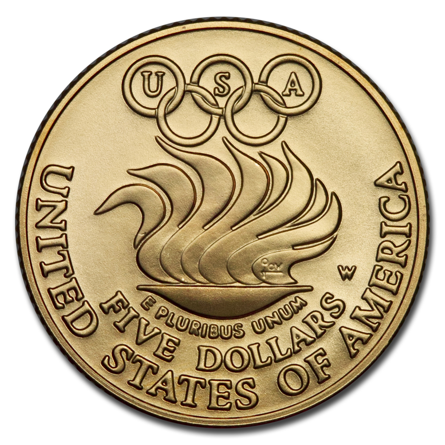 • Reverse: Depicts a stylized Olympic flame with the Olympic rings above containing the letters USA.