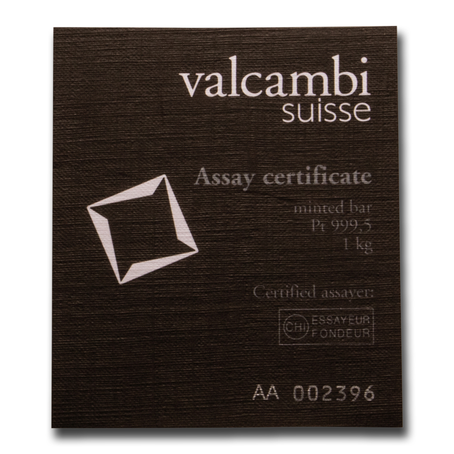 1000 gram Platinum Bar - Valcambi (w/Assay)