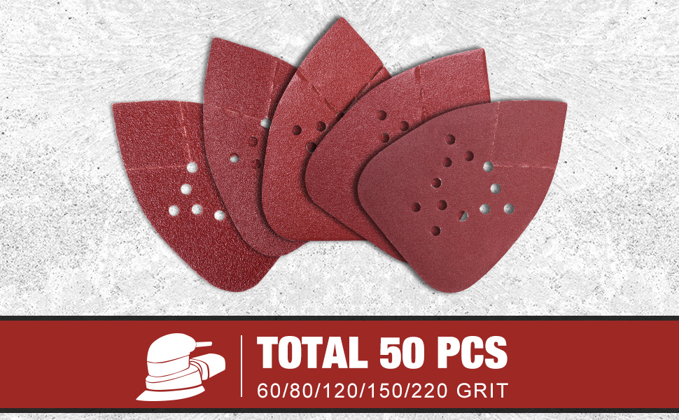 Open-coat, double resin-bonded aluminum oxide abrasive provides long life and fast material removal mainly on wood, also applies to metal, drywall, fiberglass, or painted surfaces. The hook and loop back with long silk flannelette makes disc replacements easy, quick and not fall off when installed in use. This sandpaper disc features a heavy duty D-weight backing to withstand tearing and enhance strengththis. 12-hole pattern enables efficient dust extraction. Fits Black & Decker Sander, such as BDCMS20C, BDEMS600 and other detail sanders.