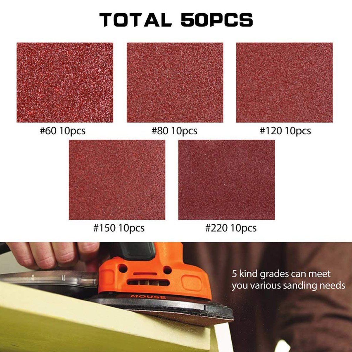 60/80/120/150/220, 10PCS of each grit