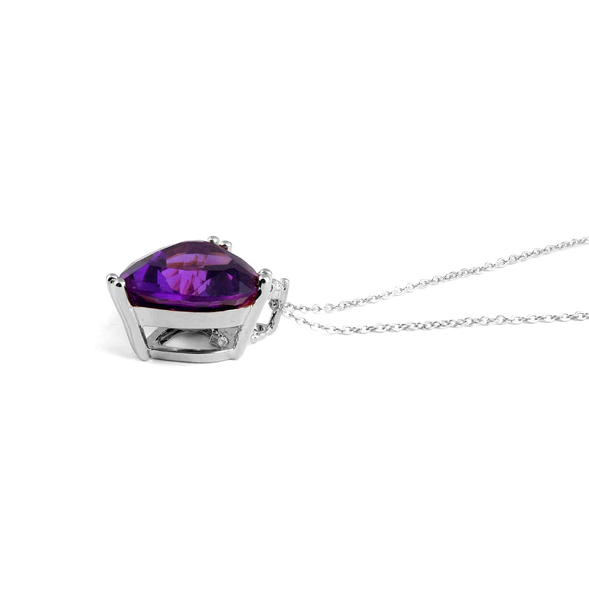 14k White Gold 2.51ct AAA Natural Amethyst and Diamond Heart Necklace