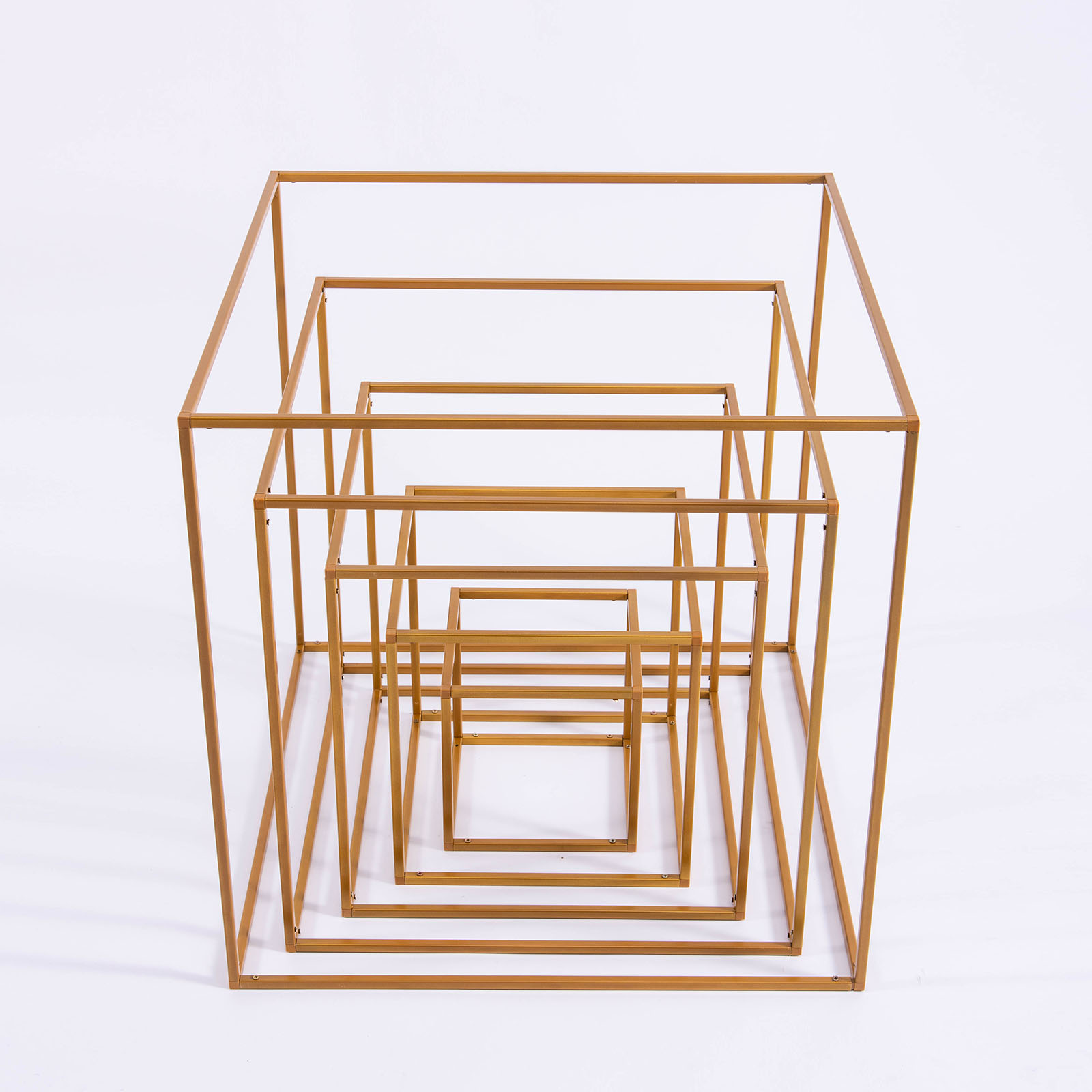 Enhance up your special day with our geometric flower vase holders! Crafted from metal, they provide a contemporary look with an openwork, geometric design and a matte gold finish for a modern flair. These square stands are easy to pair with other tabletop decorations and can be accented with a variety of flowers, greenery, display boxes or candles. Perfect for weddings, events, and parties as centerpieces, or simply as decorative pieces for your home or office. Also makes a lovely gift.