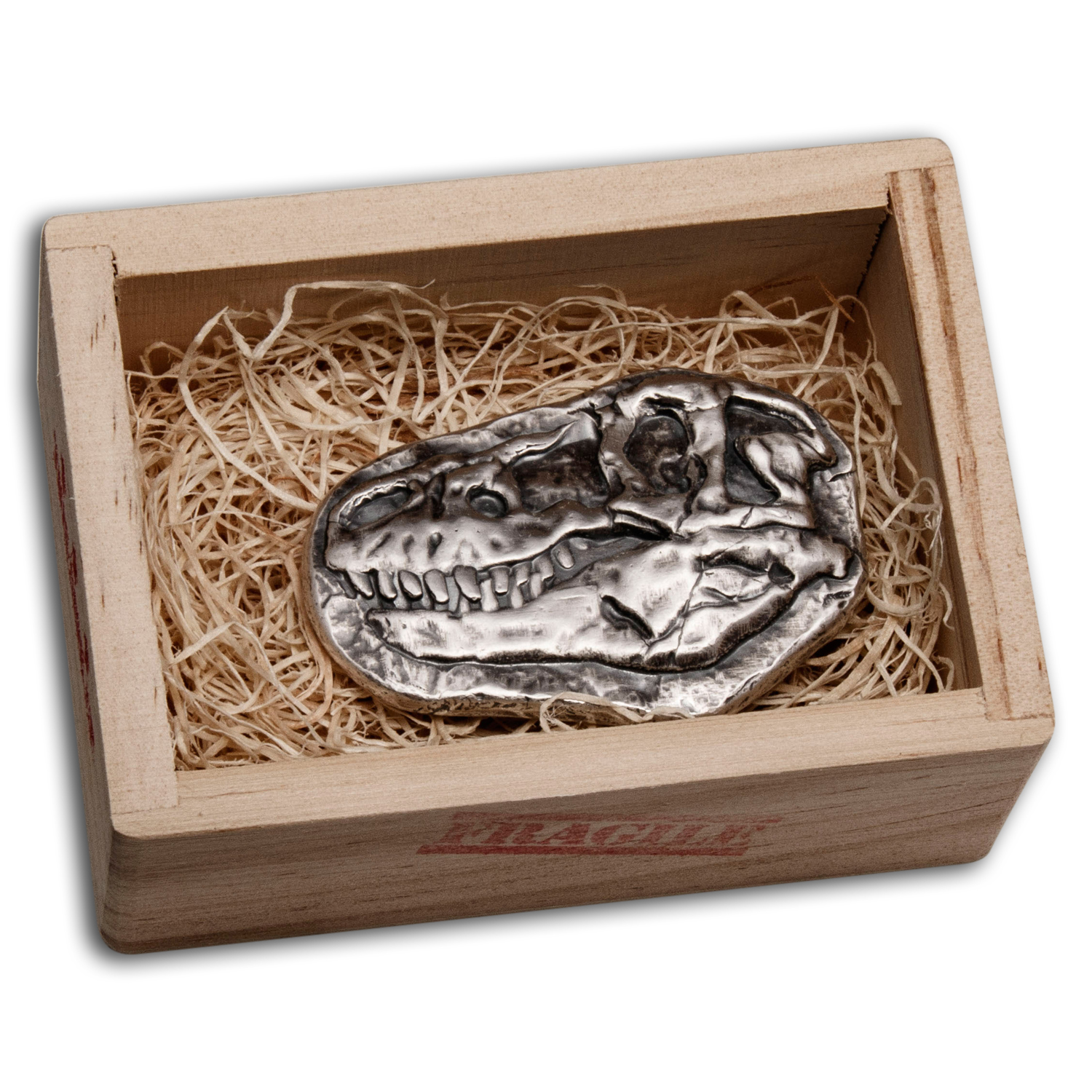 3 oz Hand Poured Silver - MPM (T-Rex Fossil, w/Wooden Crate)