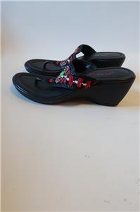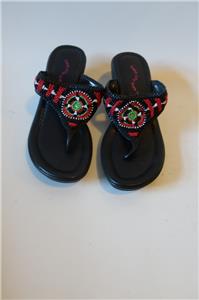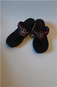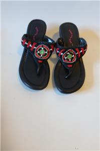 - NWD WOMENS TWO CITY KIDS BLACK RED BEADED LEATHER THONG WEDGE SANDAL 37 US/7 *
