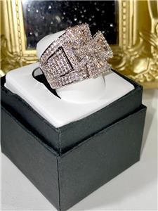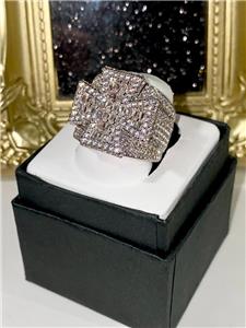 Men's Ring Iced Out 2.5ct Bling Diamond 14k White Gold Pinky Ring Size 6-10