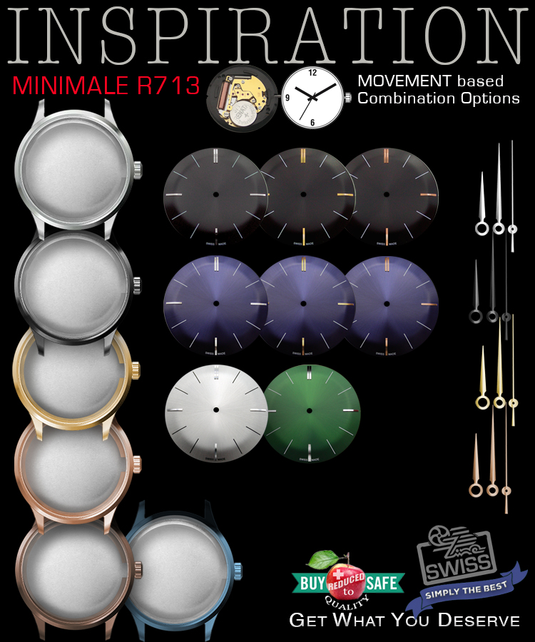 MIN+ SEK Zeiger wurden speziell auf unsere gebeugten MINIMALE Zifferblätter abgestimmt |