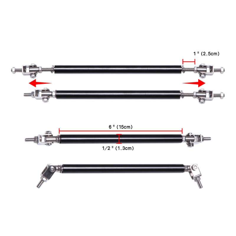 This listing is for 1 pair of Black front bumper lip splitter rod strut tie bar fit Dodge Charger Challenger. These front support rods are used to reinforce your front splitter or rear diffuser. It is universal fit for any car SUVs trucks, if you need to extend the strut bar, you can extend its length from 6” to 11”. It will give your Dodge a striking appearance in a minute !!! Features