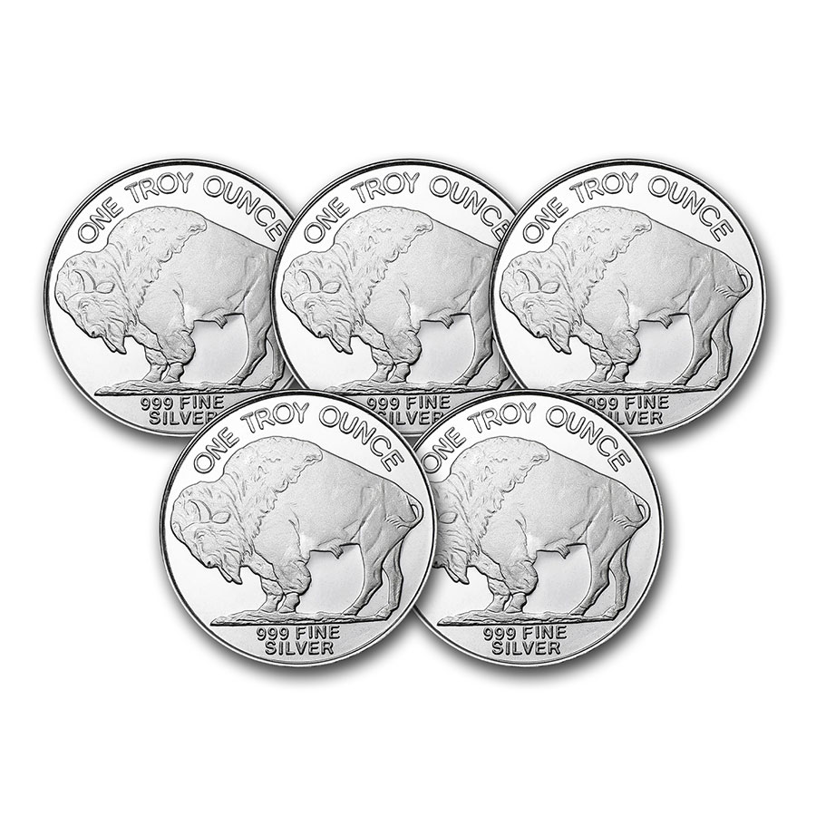 These popular 1 oz Silver Buffalo Rounds feature Native American icons that are rich, proud and embedded in American history. Add this Lot of 5 Silver Buffalo Rounds to your cart today!