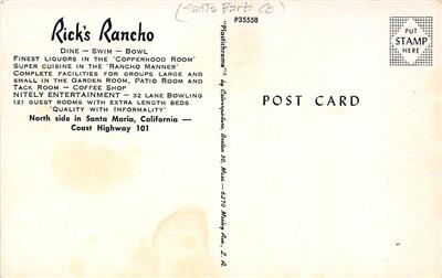 RICK'S RANCHO Santa Maria California Roadside Interior Vintage Postcard ca 1950s