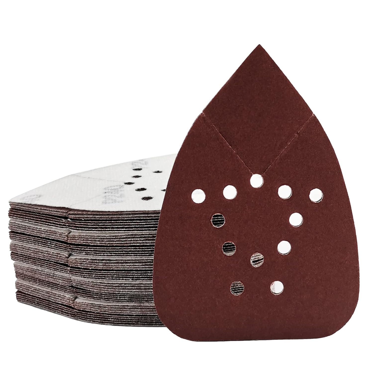 Open-coat, double resin-bonded aluminum oxide abrasive provides long life and fast material removal mainly on wood, also applies to metal, drywall, fiberglass, or painted surfaces. The hook and loop back with long silk flannelette makes disc replacements easy, quick and not fall off when installed in use. This sandpaper disc features a heavy duty D-weight backing to withstand tearing and enhance strengththis. 12-hole pattern enables efficient dust extraction. Fits Black & Decker Sander, such as BDCMS20C, BDEMS600 and other detail sanders.