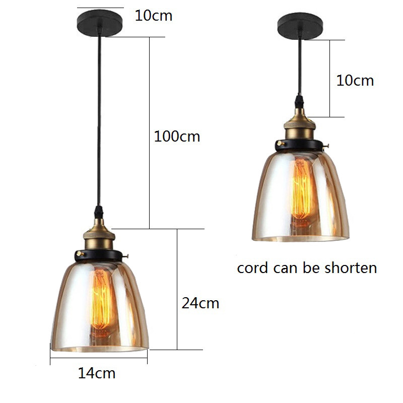 Dimension: 14x14x24cm Material: Metal and Glass Color: Amber Craft: Amber Power Rating: 60W Max Voltage: 110V-250V Light Source: E27 light bulbs Suitable Space: 10-15 square meter Apply to: Bar,Warehouse,Restaurant,Coffee Shop…