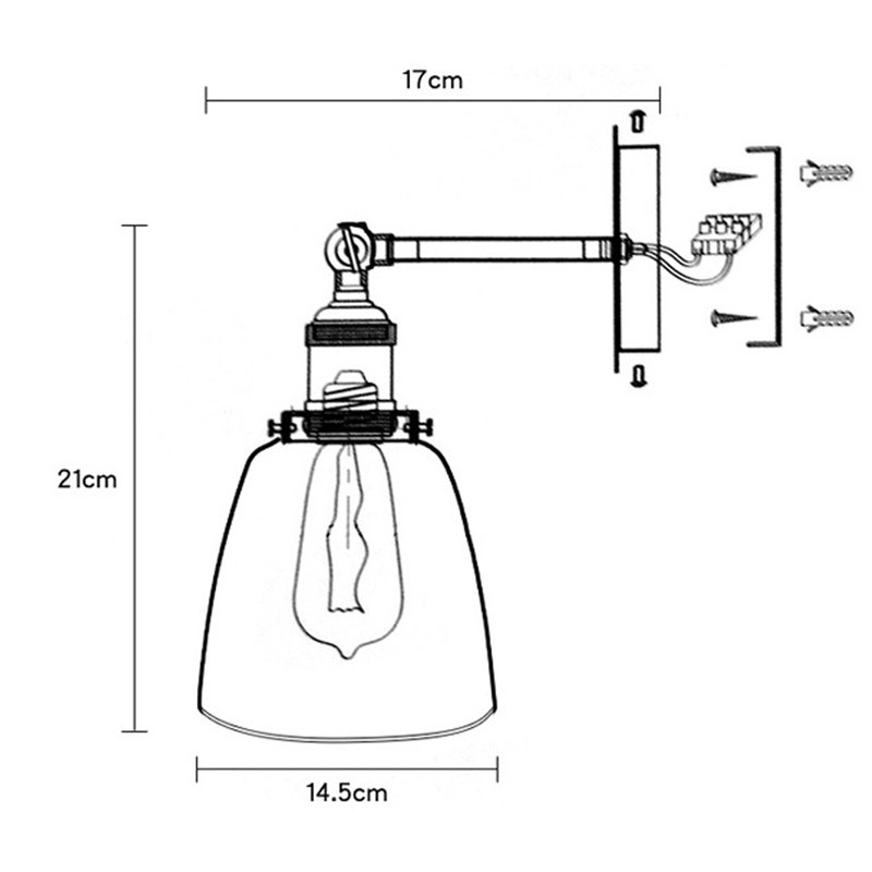 Dimension: the same with size picture Material: Copper and Glass Color: Amber ,Clear and Smoked Power Rating: 110V-250V Voltage: 31-40W Light Source: E27 light bulbs Suitable Space: 10-15 square meter Apply to: Bar,Warehouse,Restaurant,Coffee Shop…