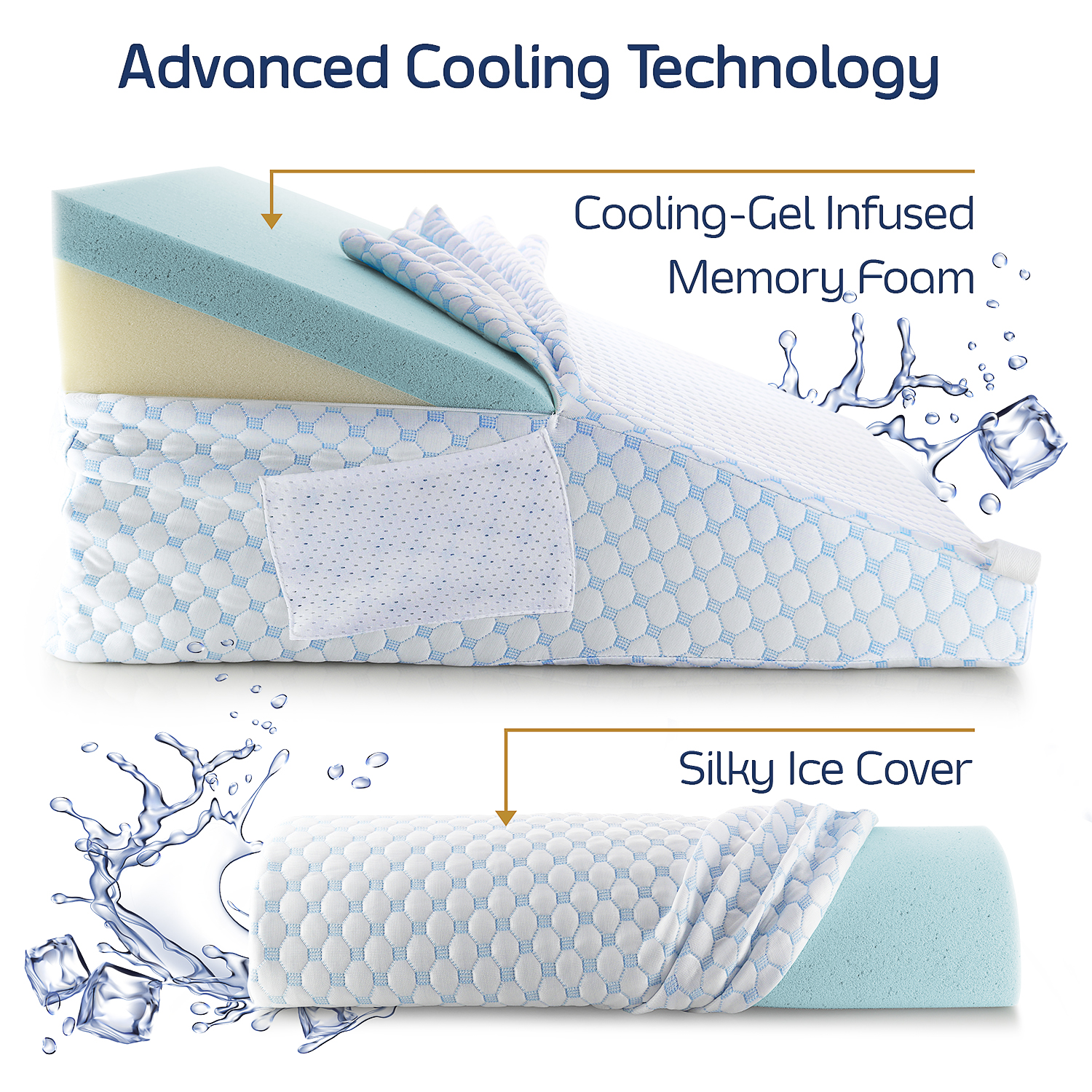 Memory Foam Pillow Wedge - Nestl’s back support pillow features a 1.5” layer of gel-infused memory foam, so the pillow perfectly contours to your shape and posture. COOLING cover is made of ultra-breathable cooling ice silk material - cool to the touch, perfect to combat unwanted night sweats and provide you with deep, refreshing sleep. The COOLING pillow cover is removable and machine washable. Machine-wash in cold water. Tumble dry on low and remove promptly.