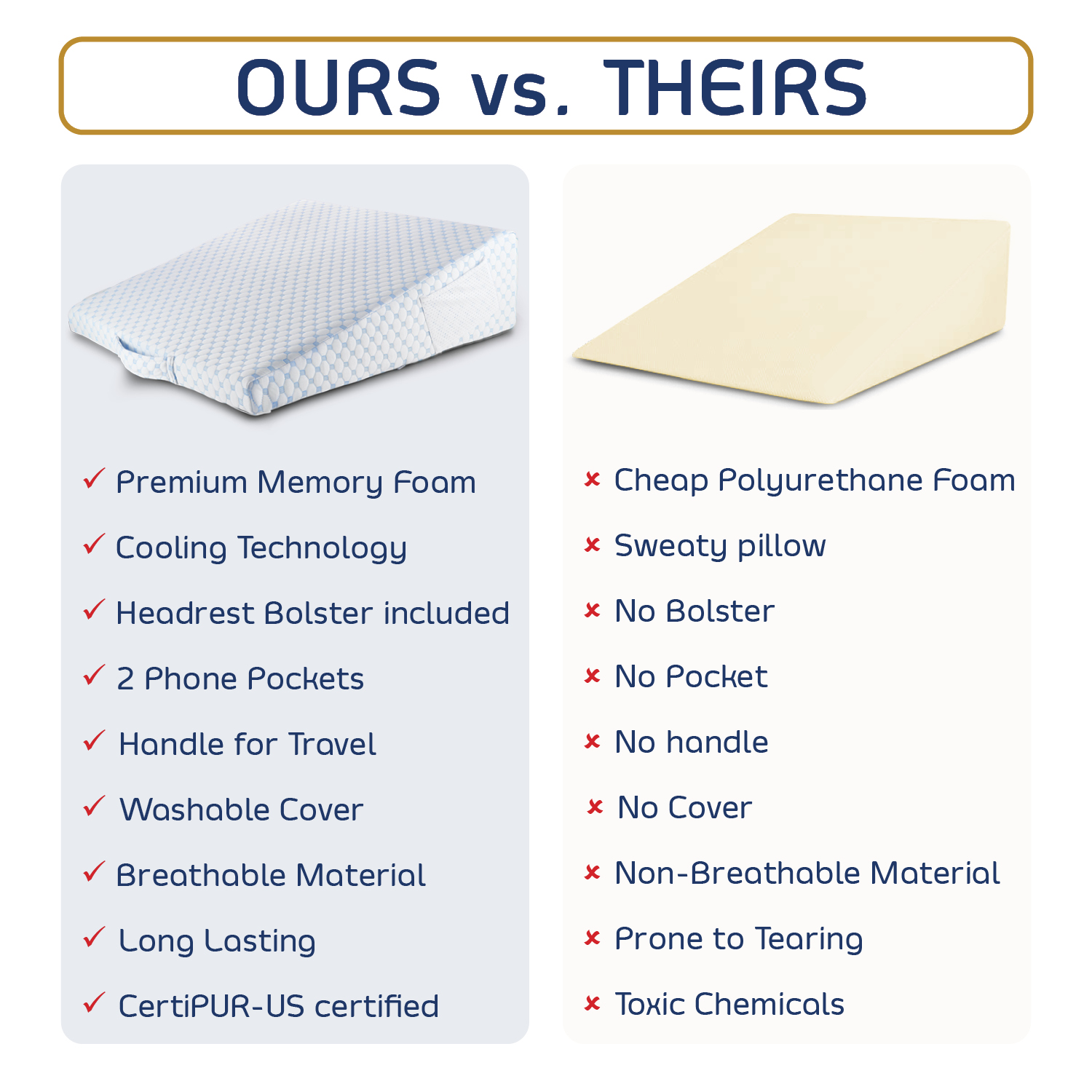 Versatile Back Pillow - There are so many ways you can improve on your comfort and support with our Wedge Pillow. They’re great bed pillows and positioners for sitting up in bed, can ease acid reflux during the night, and after certain injuries or surgeries, you may find the elevation aids in restful sleep, whether under your head, knees, or even as a leg elevation pillow.
