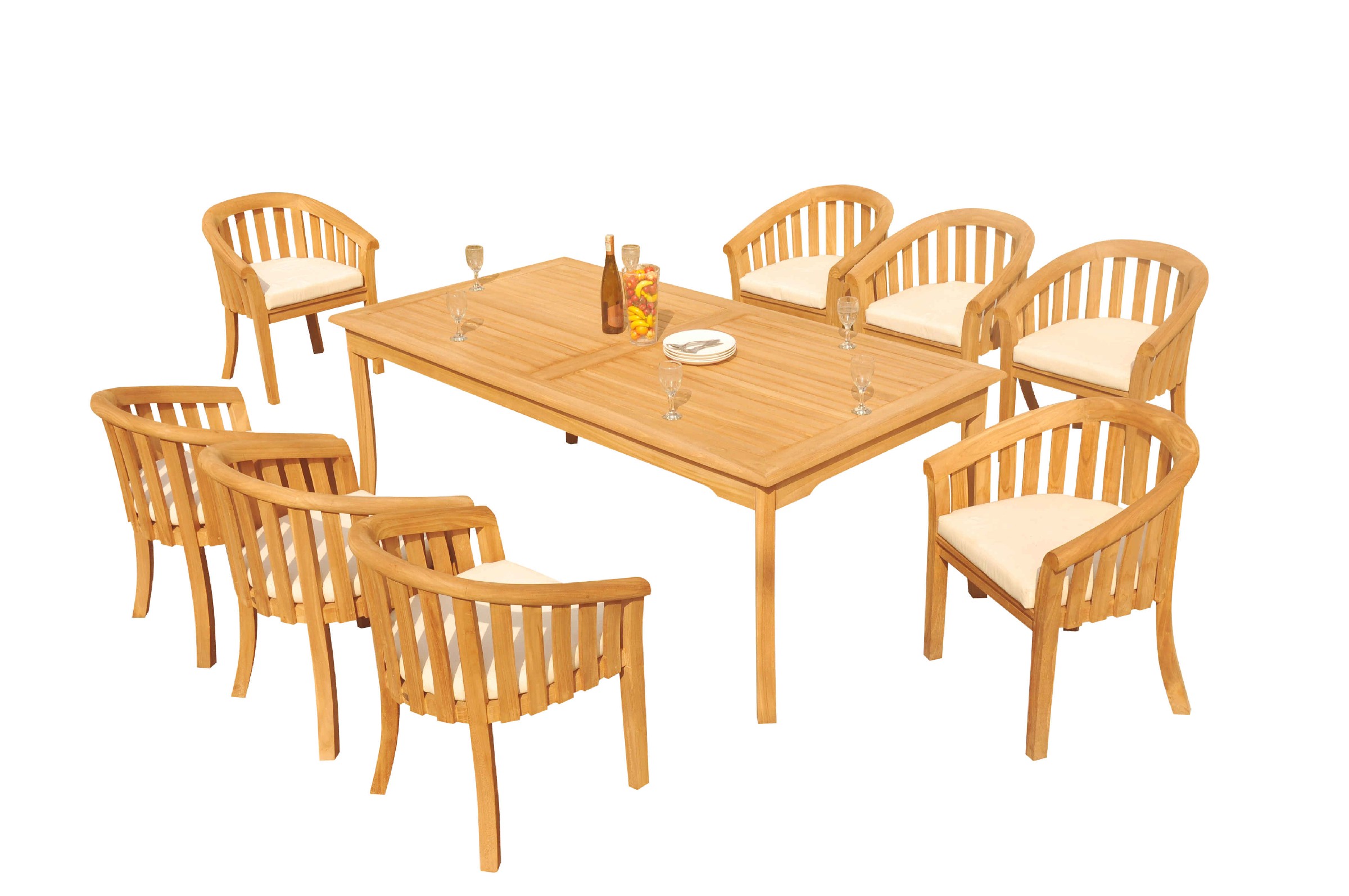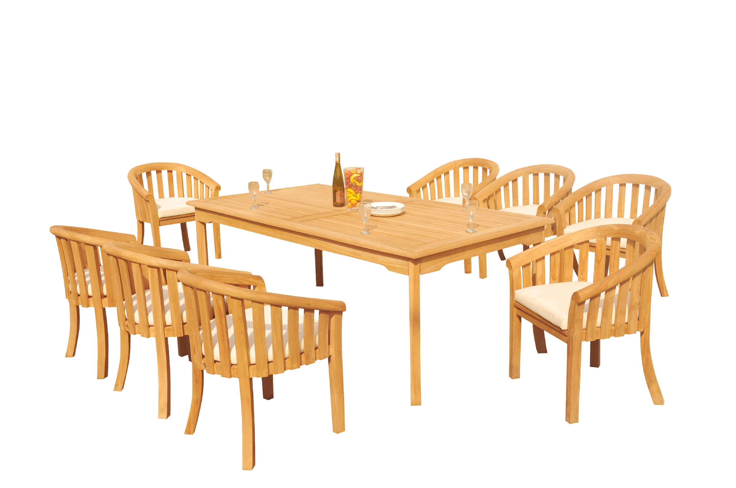 Set includes: 60" Rectangle Table and 8 Lenong Arm Chairs. Pictures shown with more chairs is for illustration purpose only. You will receive only 8 chairs. ** Wood Umbrella Hole Plug is also provided. ** 2" Umbrella Hole is available in the middle of the table. ** Umbrella is not included with the set, but can be purchase separately, please inquire. ** DON'T FORGET TO ENQUIRE ABOUT OUR SUNBRELLA CUSHIONS (SOLD SEPARATELY) ** If you need more chairs, please let us know. ** Assembly: Very little assembly is required. This furniture will be delivered in partially assembled sections. Assembly is quick and simple. **Accessories shown in picture are not included with the set. Please inquire if you are interested.