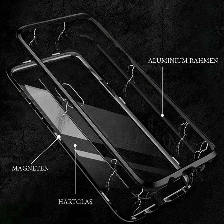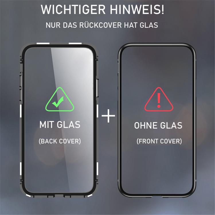 - Die Hülle besteht aus zwei Teilen - Metallrahmen mit Magnet und Backcover aus 9H gehärtetes Glas mit Rahmen aus Metall.
