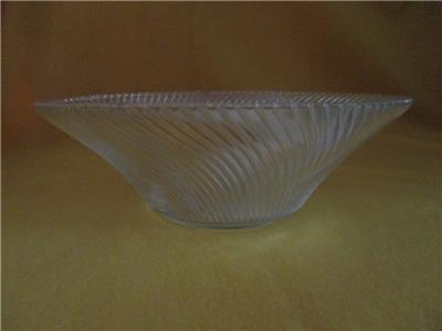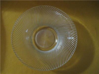 This auction is for one round clear glass swirl serving bowl. Excellent pre owned condition, has some scratches from normal wear. See photos. Don't mind the glare in the photos. No chips, no cracks, no crazing. Multiple available for individual sale. After shipping the first, each additional only adds $1.00 each to the shipping rate. Measures 9"w x 3.25"tall.