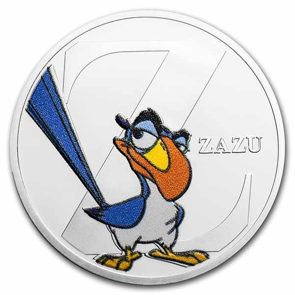 - Obverse: Displays the Disney character Zazu, from The Lion King, in full color in front of the letter Z along with his name.