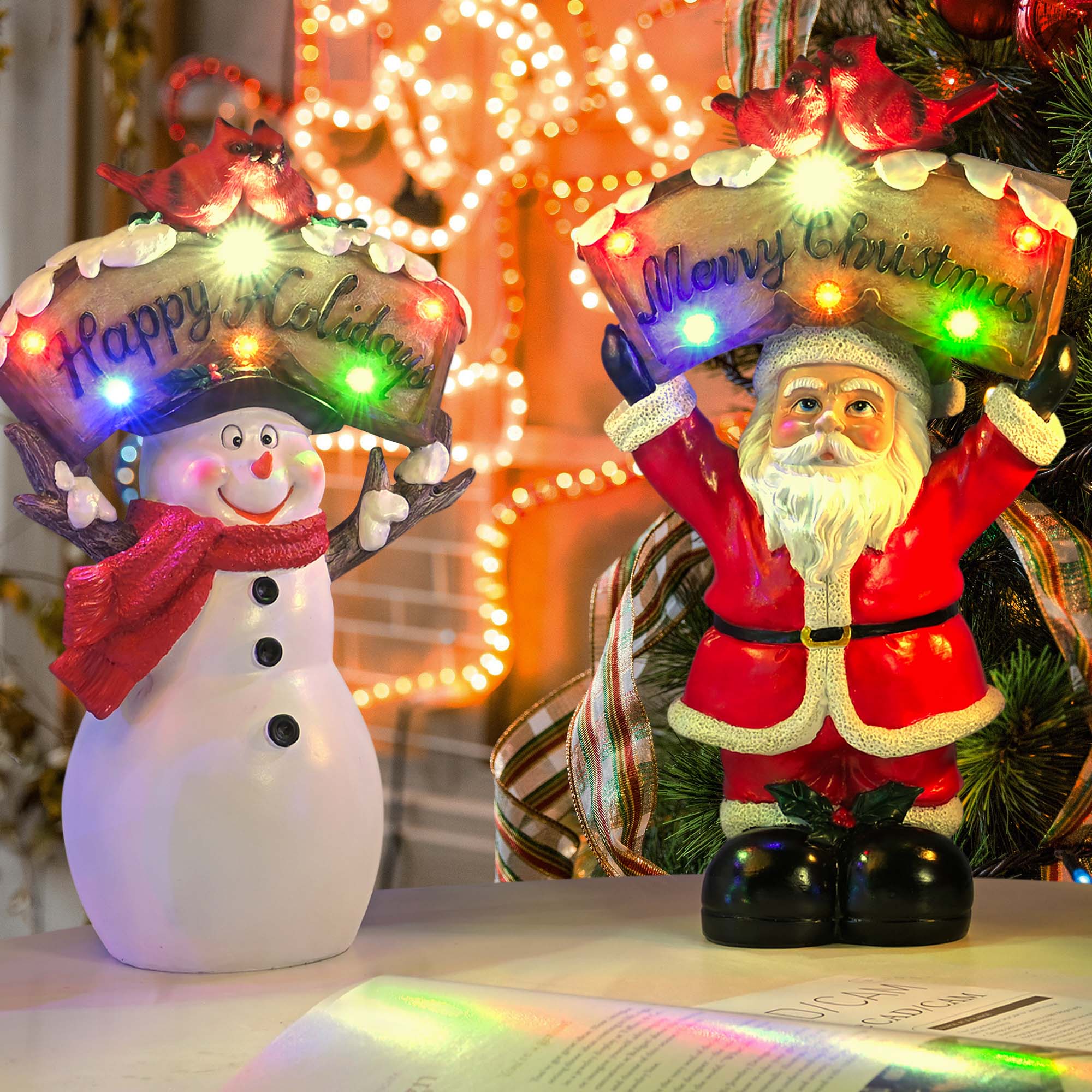 - Tabletop Christmas Decoration - Include a Santa Claus Light and Snowman Light, features beautifully hand-painted Santa and snowman figurines holding sign with LEDs overhead, one button to light up & fill your room with Christmas miracle, perfect decoration to boost holiday spirits, also ideal gift for your friends & family