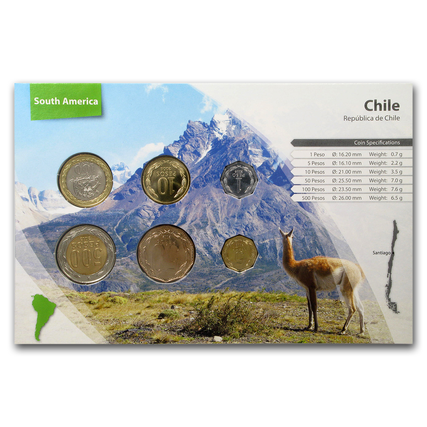 Chile 1 Peso - 500 Pesos 6-Coin Set BU (Landscape Packaging)