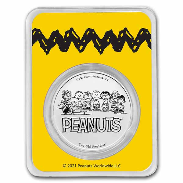 Collect them all! Build your Peanuts® character collection and your Silver stack simultaneously with Peanuts® Silver character rounds available exclusively from APMEX. Grow your Silver holdings with your favorite Peanuts® characters on every round. Charles M. Schulz's classic characters Charlie Brown, Snoopy, Sally Brown, Linus Van Pelt, Lucy Van Pelt, Woodstock, Peppermint Patty, Marcie, Schroeder, Pig-Pen and Franklin will each appear on their own colorized Silver rounds with unlimited mintages. Add to your Peanuts® collection today with these officially licensed Silver rounds.